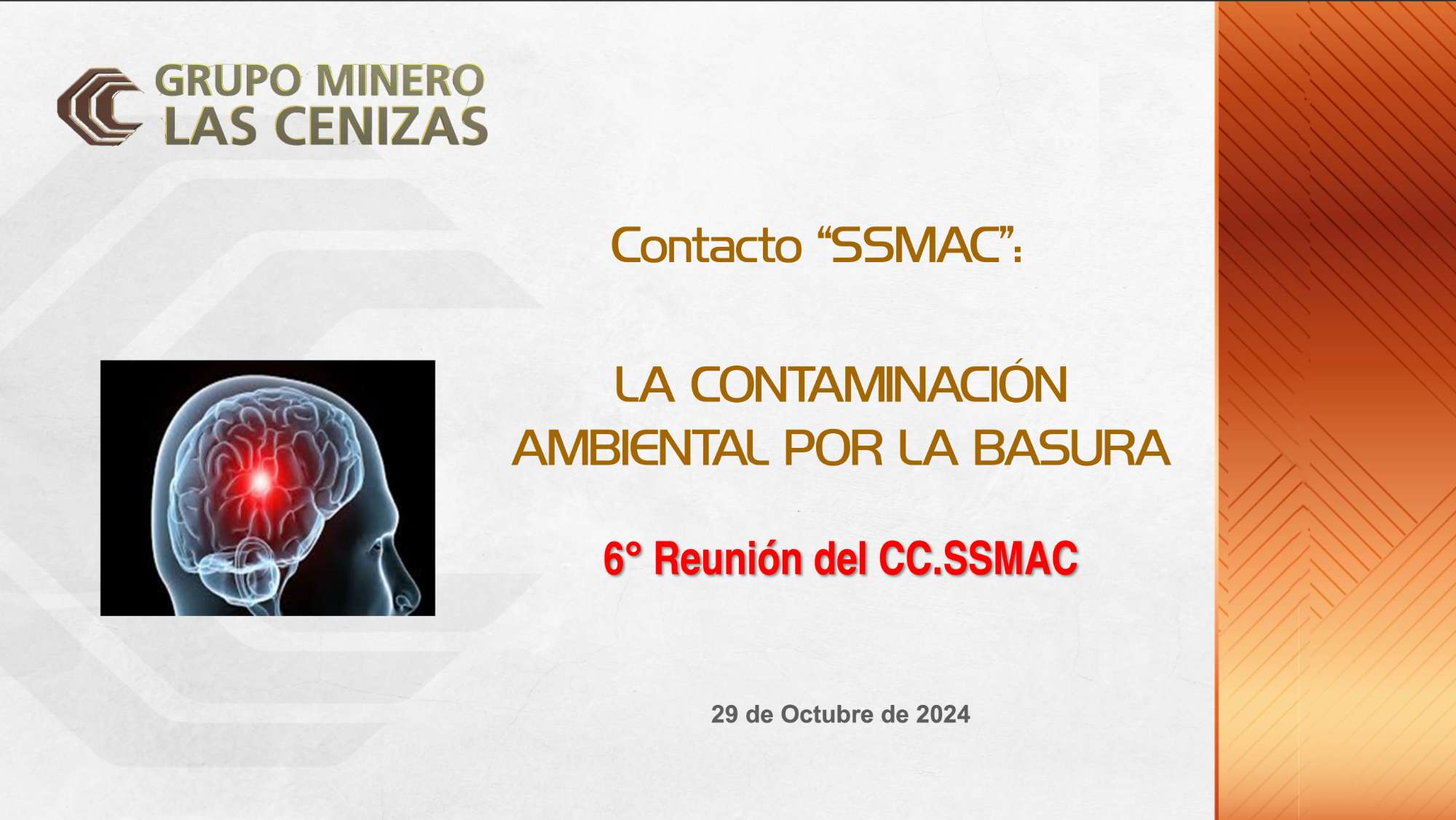- El Contacto de Seguridad que precede el temario de la 6ª Reunión del Comité Central SSMAC se refirió a la contaminación ambiental por la basura, invitando a sus participantes a refelxionar sobre este problema nacional y global y cómo lo estamos enfrentando social e individualmente .