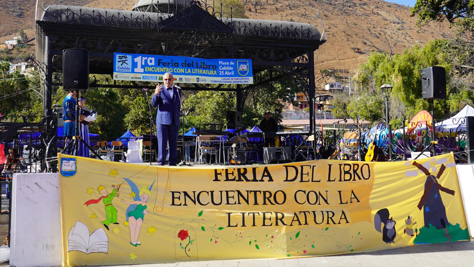 - En el odeón de la Plaza de Armas de Cabildo, el jueves 25 de abril se realizó la inauguración de la Primera Feria del Libro «Encuentro con la literatura«, organizado por el Colegio Andrés Bello.