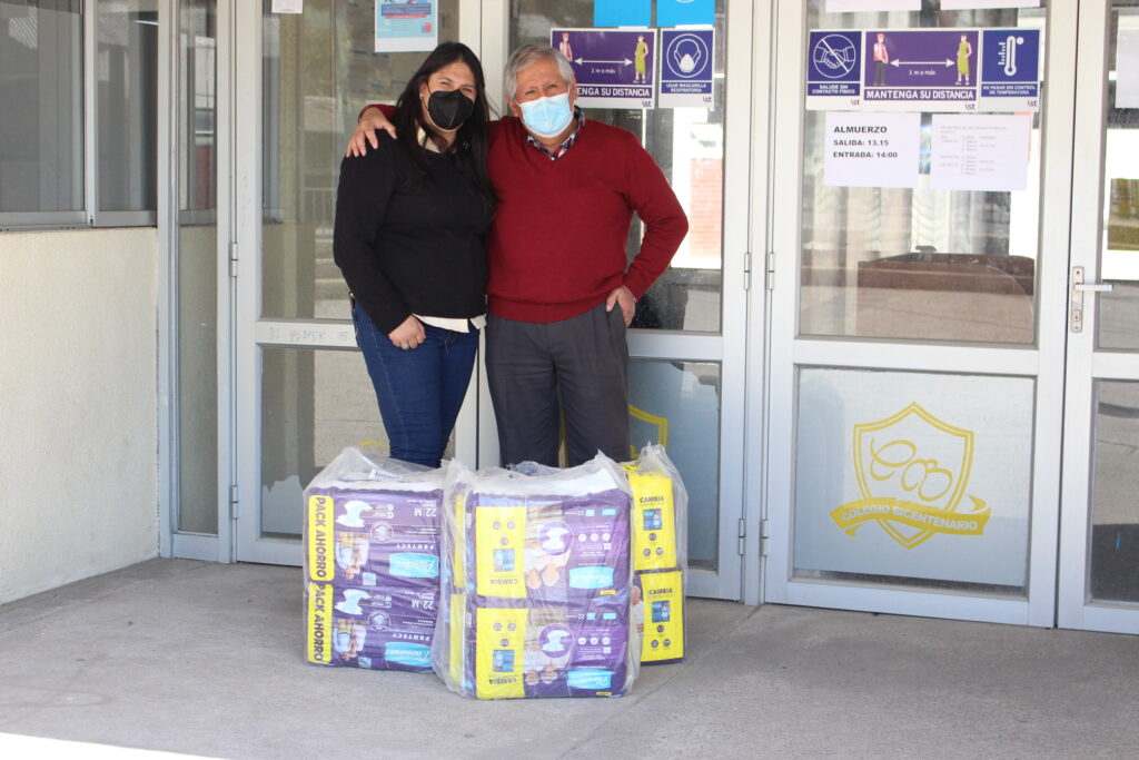 La iniciativa solidaria de ir en beneficio de los adultos mayores que residen en el Hogar San José, consistió en cajas de pañales para adultos, que fueron entregadas por la coordinadora del Área de Comunidades de faena Cabildo, Dannae Cataldo, al director del establecimiento educacional, Octavio Rivera.