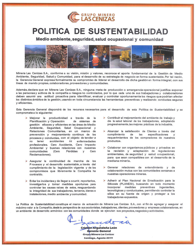 • ► En Grupo Minero La Cenizas, nos comprometemos a continuar con la protección y el mejoramiento del Medio Ambiente en beneficio de la comunidad.