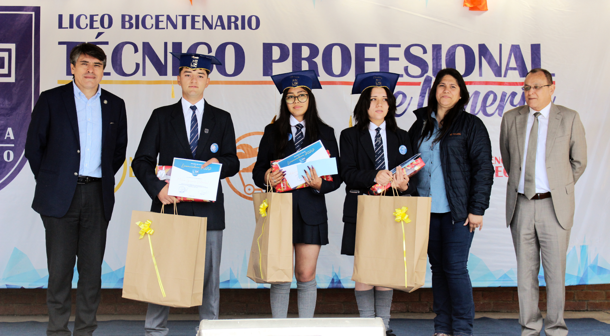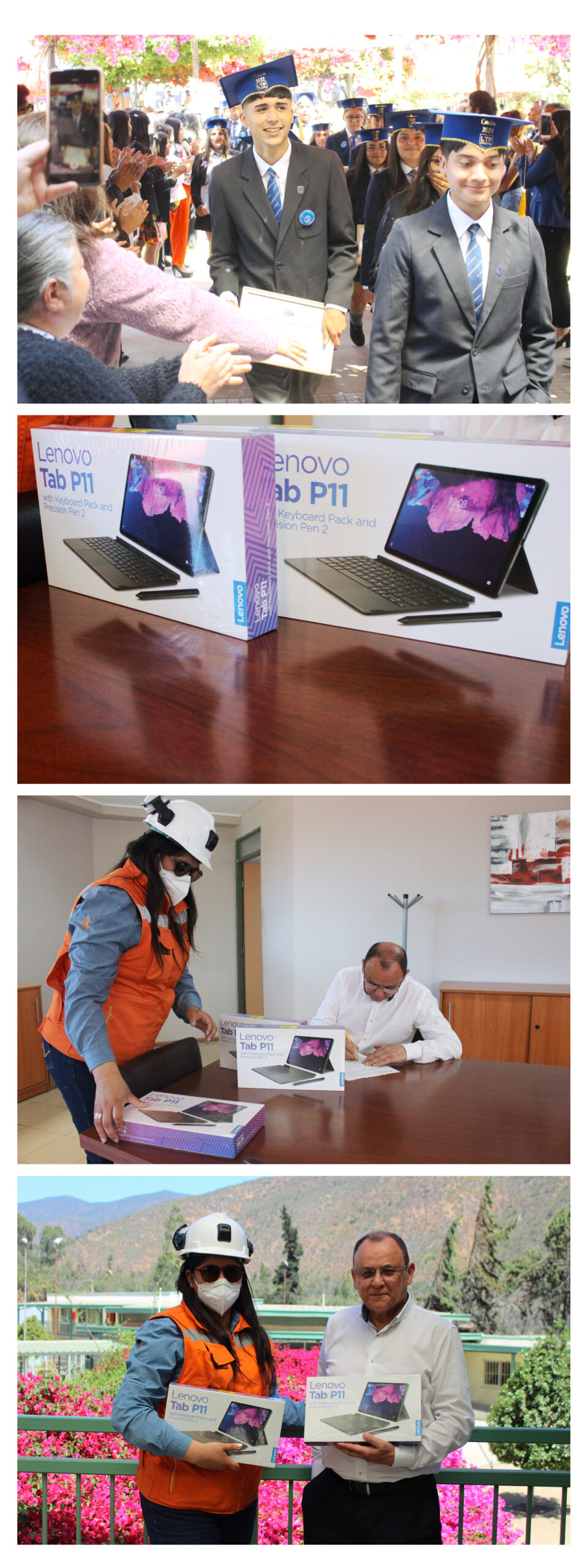 En la emotiva ceremonia con que el Liceo Bicentenario Técnico Profesional de Minería honró la licenciatura de las y los estudiantes de cuarto medio que terminaron sus estudios, Faena Cabildo, por medio de su Área de Comunidades, entregó tablets a los 3 alumnos destacados que se especializaron en las áreas de Explotación Minera, Metalurgia Extractiva y Asistencia en Geología.