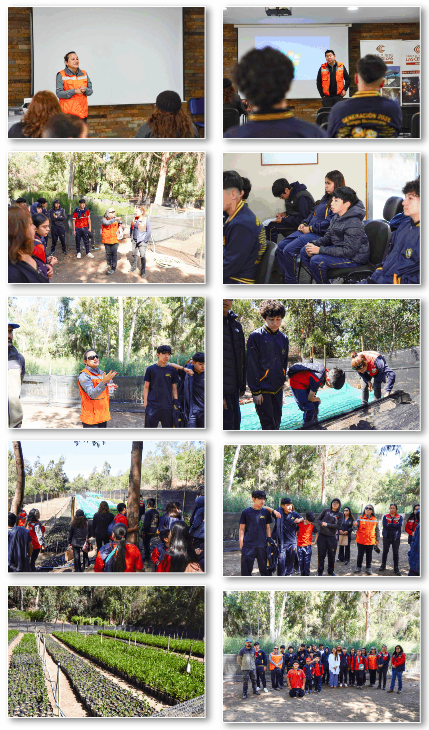 Durante la visita, los estudiantes -además de recibir una charla preventiva antes de ingresar a la empresa- conocieron de cerca cómo se reproducen los árboles utilizados en procesos de reforestación y aprendieron el valor de transformar las instalaciones y gestión operativa en una oportunidad de aprendizaje para el territorio.