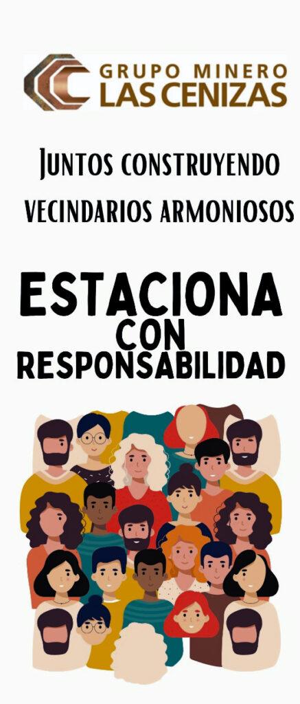 Complementario a las iniciativas anteriores, Minera Las Cenizas ha lanzado la campaña “Estacionamiento Responsable” para promover conductas de respeto que colaboren a mantener las vías descongestionadas y a normalizar el estacionamiento de vehículos en calles y pasajes aledaños a la Planta, con el fin de mejorar la calidad de vida de los vecinos.