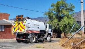 El vehículo de barrido realiza labores de limpieza en las calles perimetrales a la Planta Concentradora y en los caminos internos de las instalaciones.