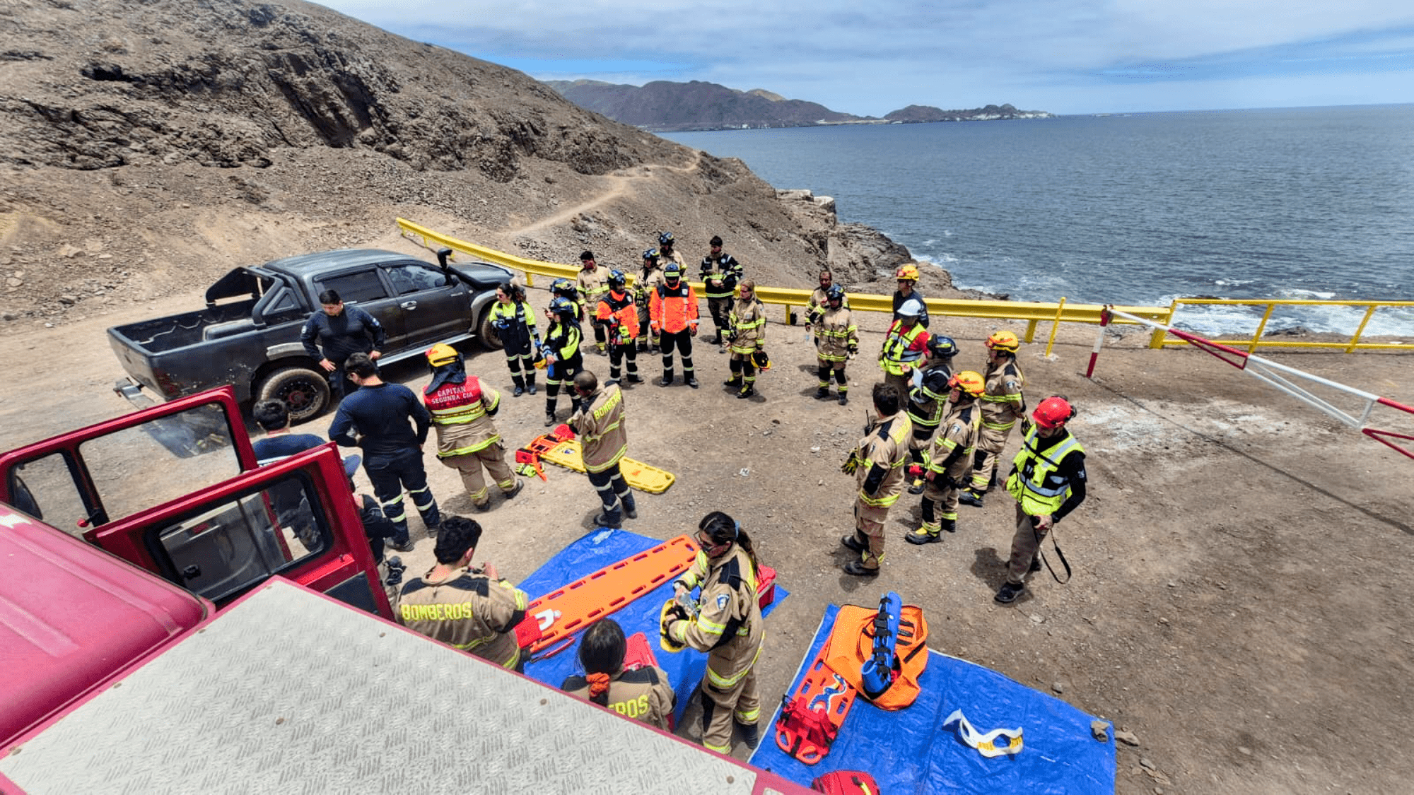 Rafael Samovich, director de la Segunda Compañía señaló: “Contamos con personal de Bomberos; del Servicio de Atención Médica de Urgencia (SAMU); y de la Capitanía de Puerto de Taltal. Es un vínculo macro que estamos desarrollando en la comuna para mejorar nuestros tiempos de respuesta, la coordinación interinstitucional y el servicio que entregamos a la comunidad”.