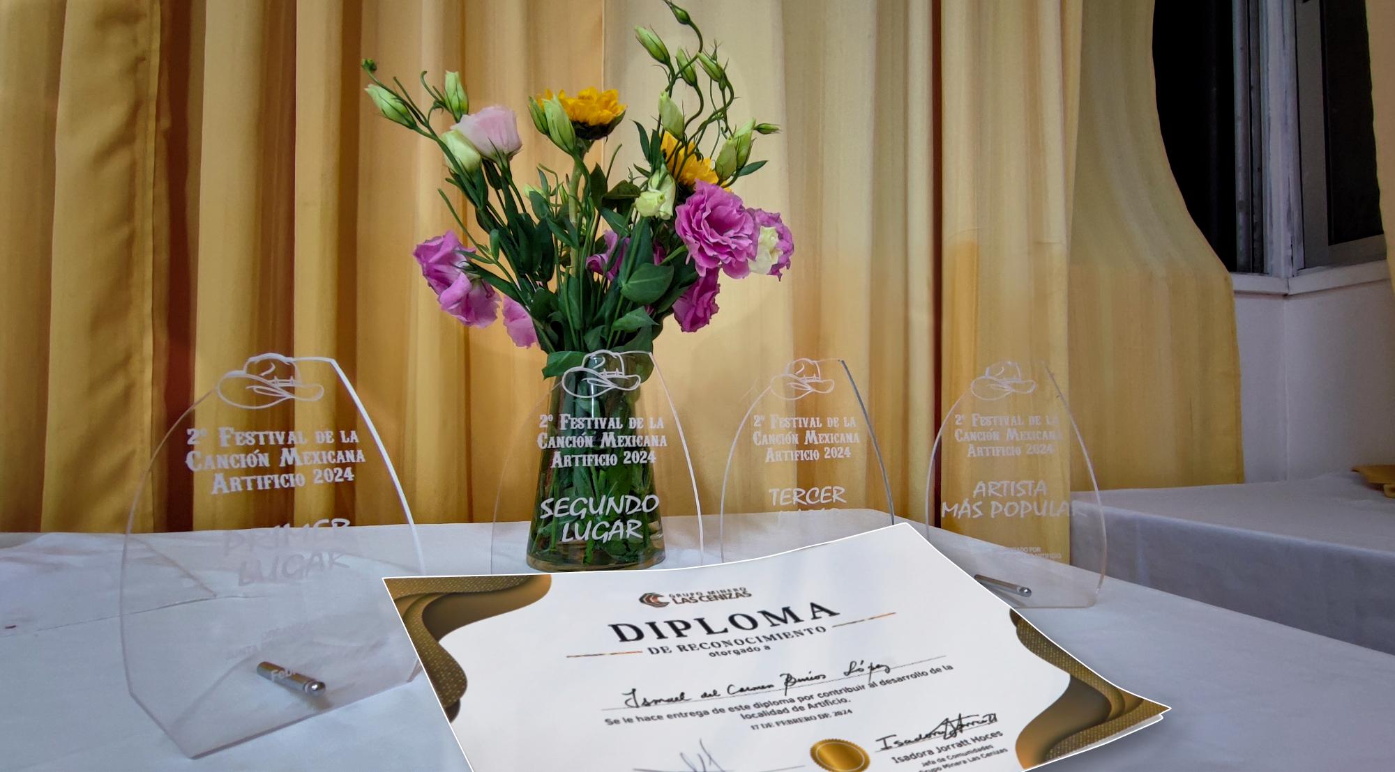 Como un aporte adicional a la segunda edición del Festival de la Música Tradicional Mexicana 2024, el Área de Comunidades, colaboró con los galardones para el artista más popular y para los tres primeros lugares.