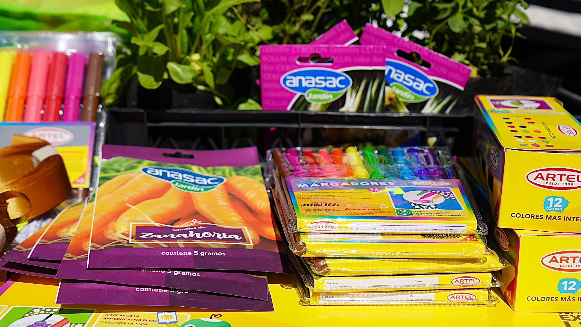 Esta contribución incluyó  plumones, blocks de dibujo y útiles para manualidades.