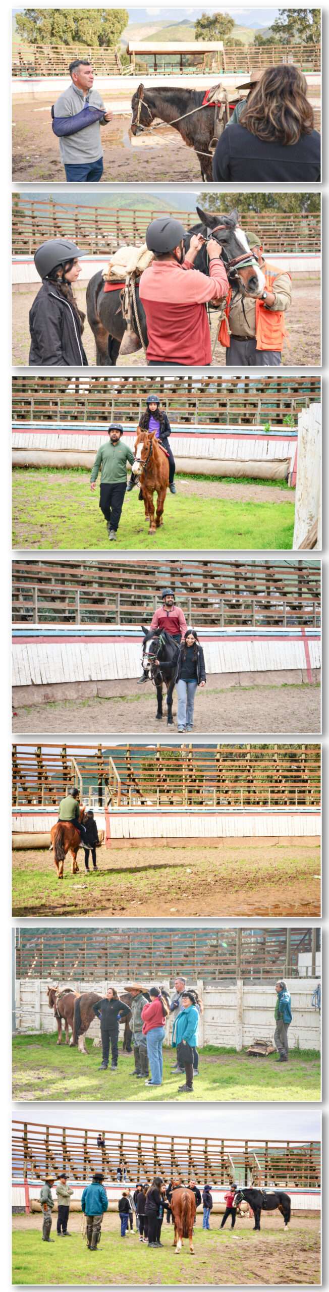 Las primeras sesiones, realizadas en agosto en la Medialuna del Parque Municipal de Cabildo, estuvieron enfocadas en la formación de un equipo interdisciplinario de profesionales compuesto por un kinesiólogo, dos fonoaudiólogas y una terapeuta ocupacional.