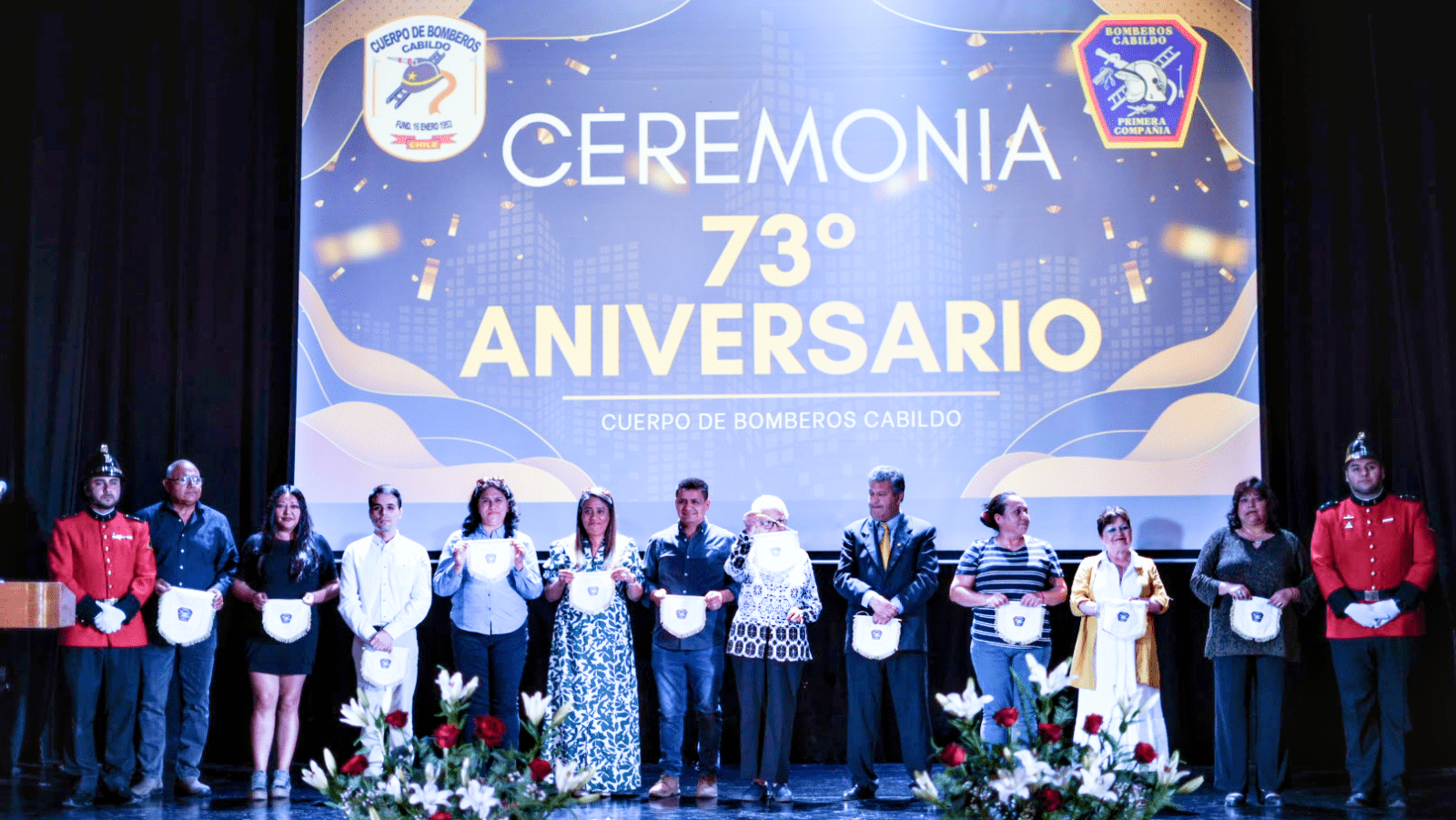 Con un especial homenaje a Minera Las Cenizas Cabildo, el Cuerpo de Bomberos de Cabildo conmemoró su 73° aniversario de fundación en una solemne ceremonia realizada el miércoles 21 de enero en el Teatro Municipal, la que reunió a voluntarios, autoridades locales y representantes de la comunidad.