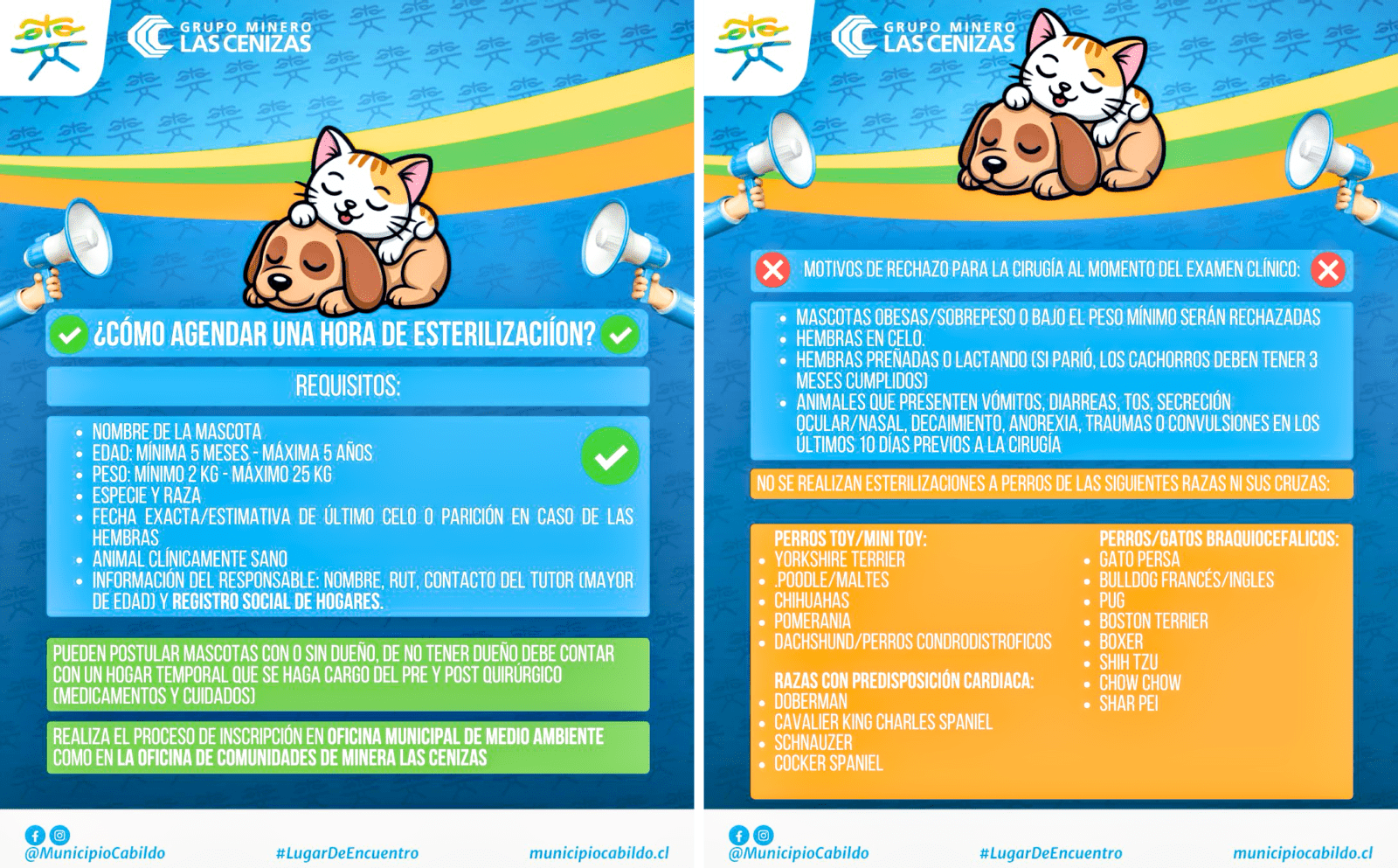 - Convenio entre la Municipalidad de Cabildo y el Minera Las Cenizas, habilitará un programa de esterilización gratuita de mascotas que busca prestar apoyo a las familias y fomentar la tenencia responsable.