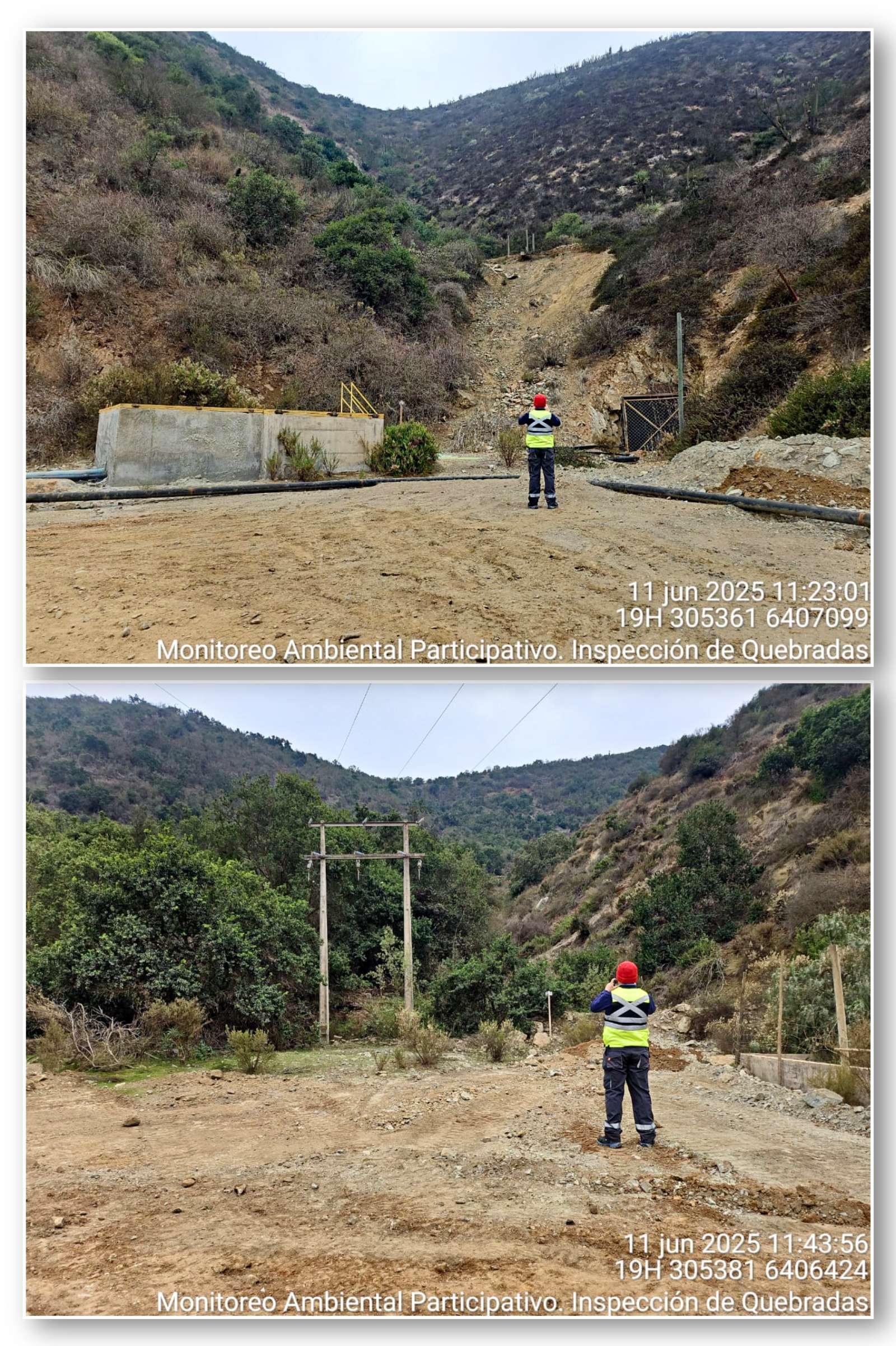 La inspección fue realizada por Fabián Soto y José Sepúlveda, profesionales del Laboratorio ALS, acreditado como Entidad Técnica de Fiscalización Ambiental (ETFA), quienes recorrieron el área acompañado por una profesional de la empresa y sin la participación de representantes de la comunidad.