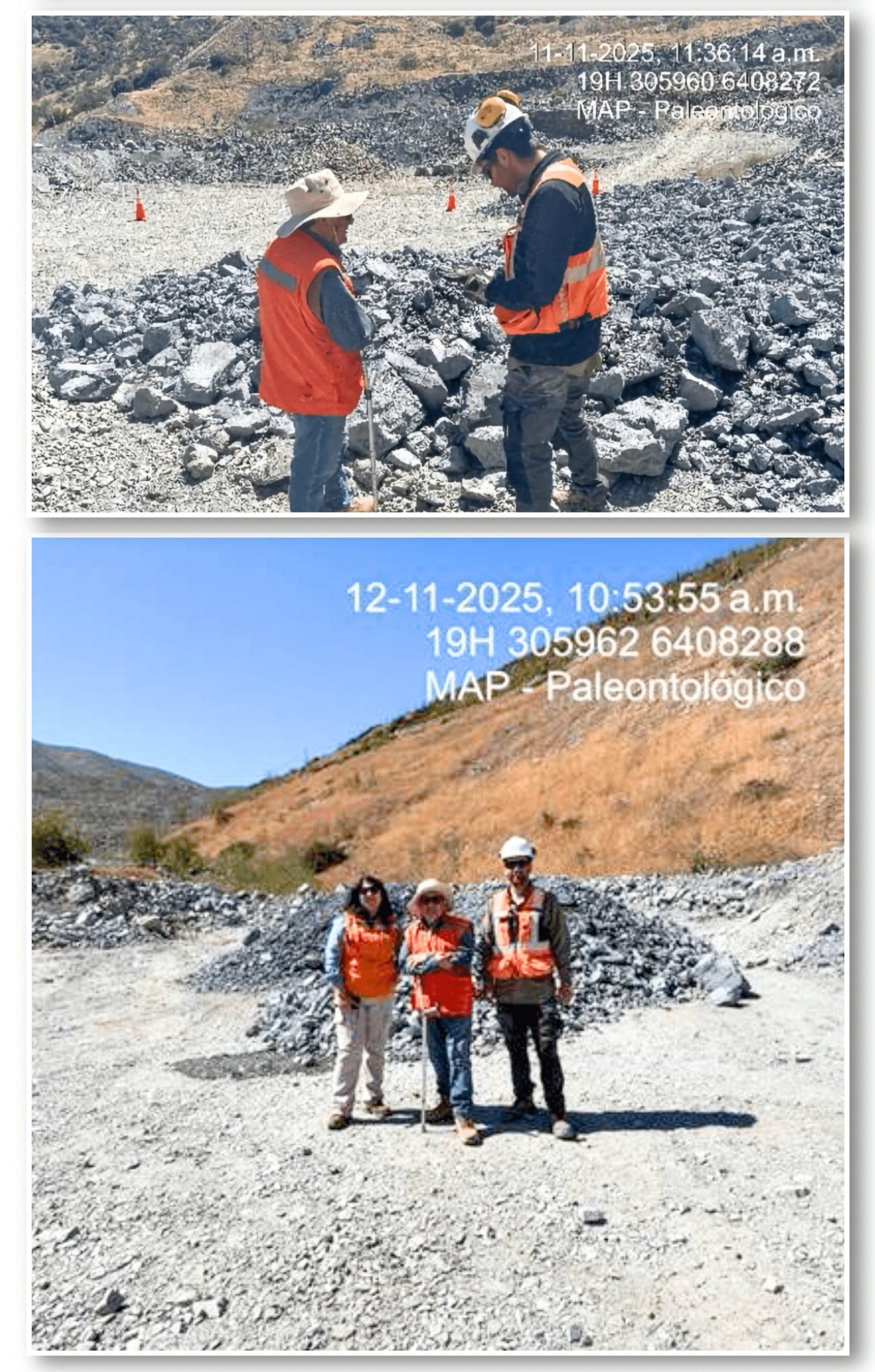 - Los días 4, 5 y 9 de diciembre de 2025 se realizaron las actividades de Monitoreo de Potencial Paleontológico en el marco del Monitoreo Ambiental Participativo (MAP), que forman parte de los compromisos ambientales voluntarios (CAV) del Proyecto Continuidad Operacional Mina Sauce (COMS), calificado ambientalmente favorable mediante RCA N°202405001171.