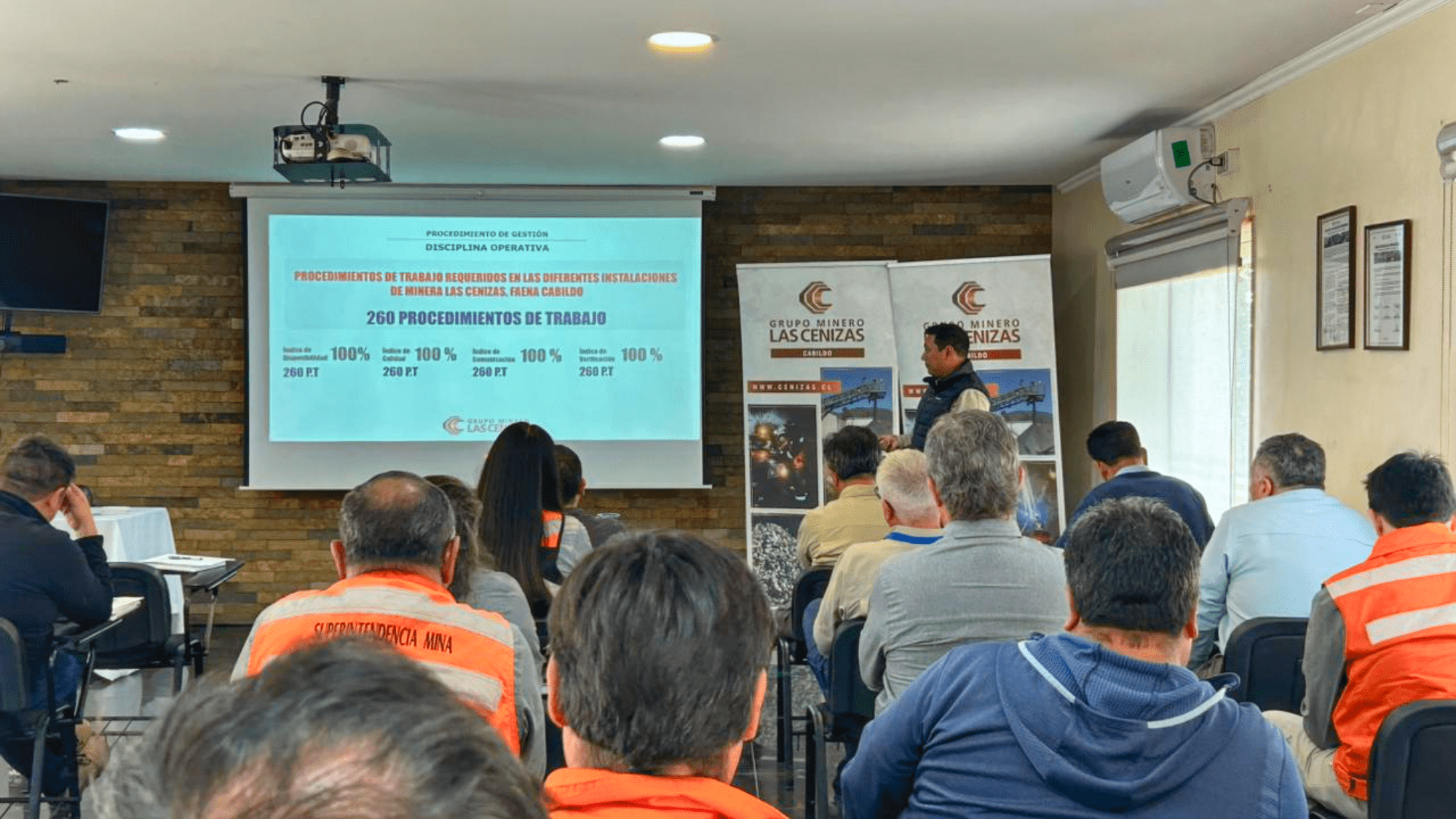 Las presentaciones se realizaron en la Sala de Capacitación de la empresa y contaron con la presencia del Superintendente Corporativo de Prevención de Riesgos, Alberto López; el Gerente de Operaciones Cabildo, Andrés Monardes; superintendentes y jefes de áreas locales.