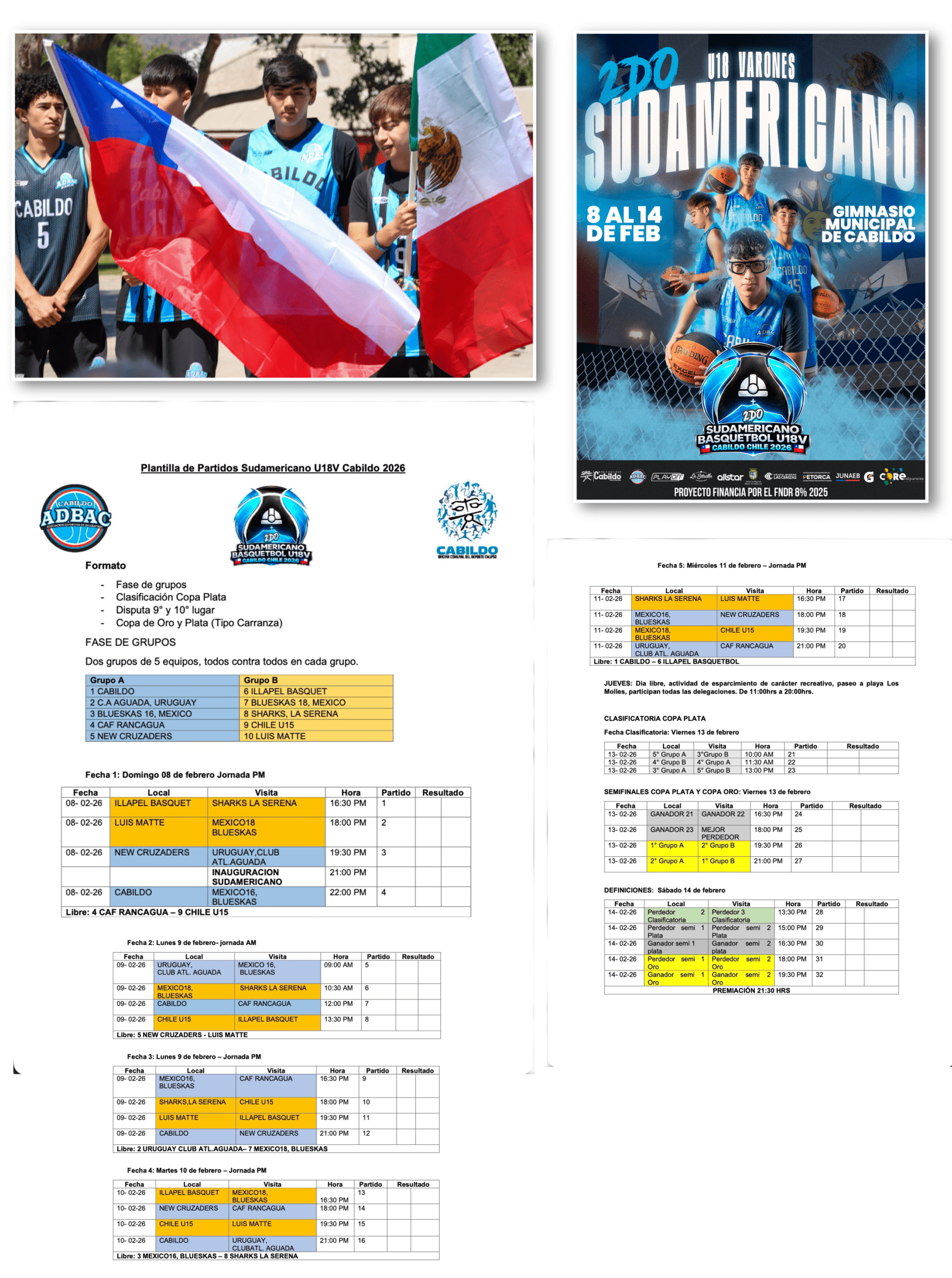 - Desde el 08 al 14 de febrero, en el Gimnasio Municipal de Cabildo se llevará a cabo el campeonato Sudamericano de Básquetbol U18, torneo que reúne delegaciones de México, Perú, Uruguay y Chile, incluyendo la selección chilena U15.