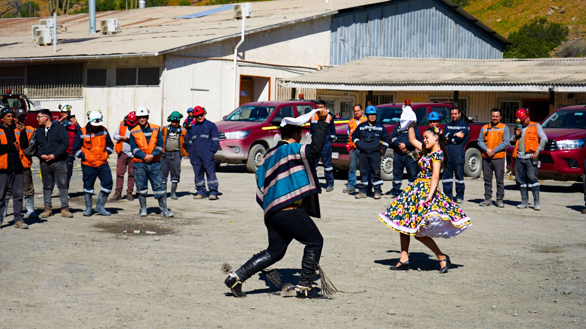 Con la participación del Grupo Folclórico Las Cenizas, trabajadoras y trabajadores de la faena rindieron homenaje a San Lorenzo, patrono de la minería, con misas a la chilena y vistosas muestras de nuestro baile nacional.