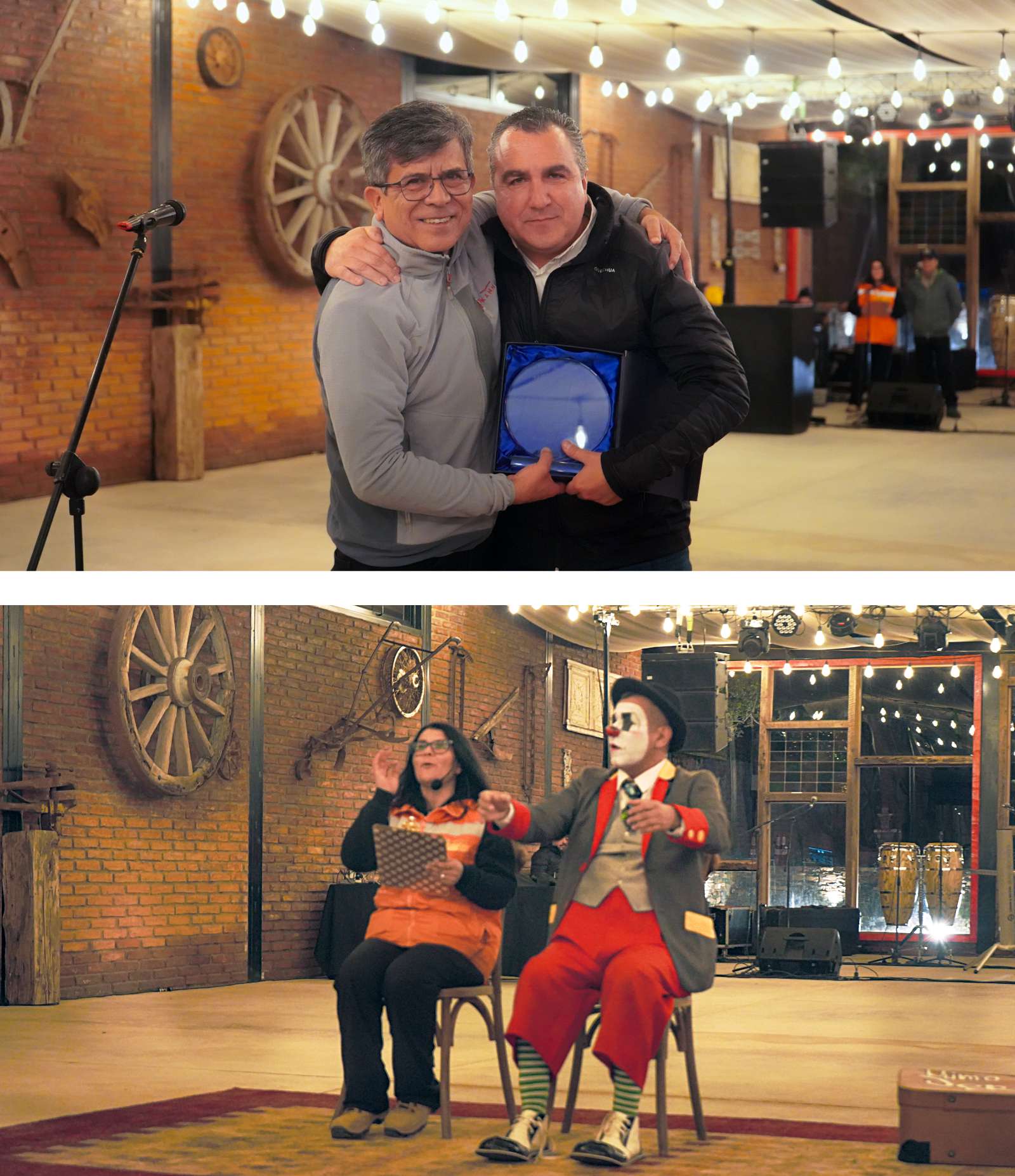 Con la participación del área administrativa y supervisores de la faena Minera Las Cenizas Cabildo celebró el Día del Minero con una cena en la que fueron destacados por el compromiso y alto nivel de colaboración, el Superintendente de Geología, Felipe Sepúlveda y la Supervisora de Terreno Depositación de Relaves, Laura Lazo.