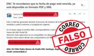 El Servicio de Impuestos Internos emitió un comunicado alertando a los contribuyentes de correos falsos que simula una notificación del SII con enlaces fraudulentos y reiteró que el servicio no envía correos con enlaces ni solicita claves o datos personales.