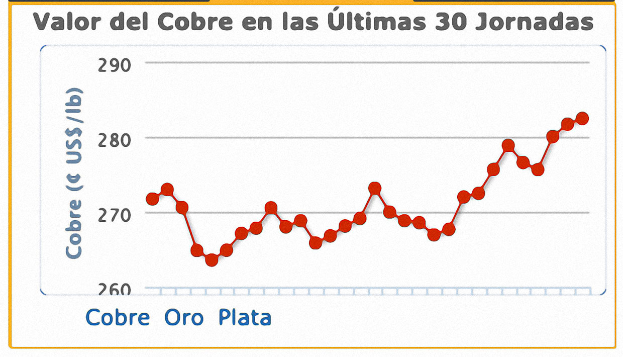 En este escenario, el valor promedio anual del commodity se ubica en US$2,70962 la libra, mientras que el promedio mensual llega hasta los US$ 2,79277 la libra.