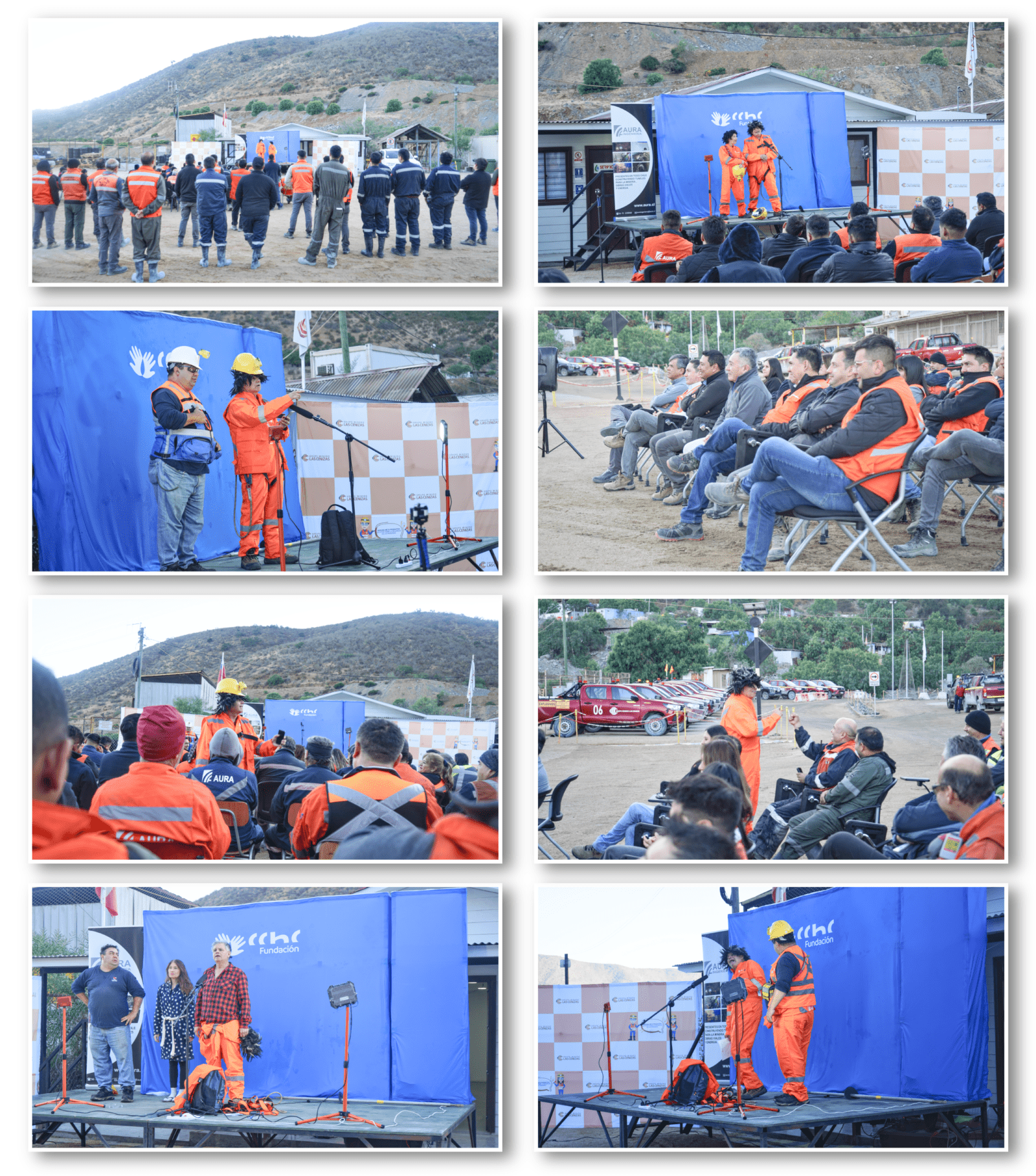 Minera Las Cenizas Cabildo agradece a Aura Ingeniería, empresa colaboradora del área Mina; a la Fundación de la Cámara Chilena de la Construcción; al director de Inventario Producciones, Raúl Brito, y a los actores Catalina Vergara y Mauricio Larrea, por hacer posible este evento que refuerza la cultura preventiva y el compromiso compartido con la seguridad.