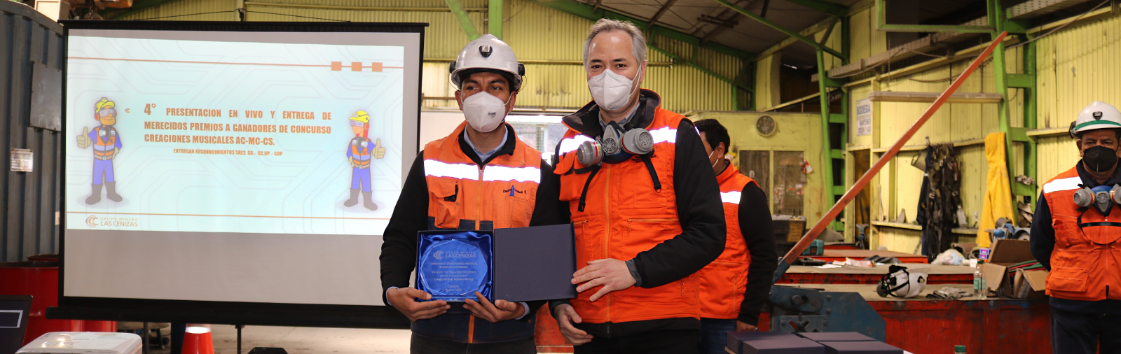 Mención Especial y su respectivo galvano obtuvo Diego Aníbal Fredes Rocco, de Mantención Planta de la faena con la canción “La Seguridad Mejorará con el Autocuidado”.