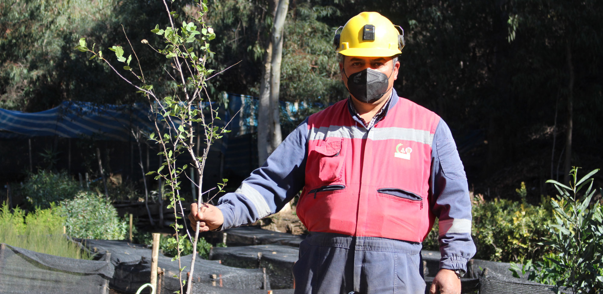 Héctor Cataldo Madariaga integra el grupo humano de la empresa colaboradora Patricio Donoso Villarroel, a cargo del Vivero de Minera Las Cenizas Faena Cabildo.
