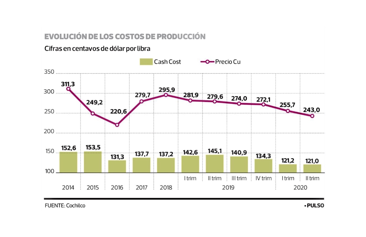 Entre el segundo trimestre de 2019 e igual lapso de 2020, el costo de caja de las grandes mineras cayó en 21,4 centavos de dólar por libra.