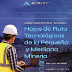- La Corporación Alta Ley anunció la presentación de los primeros resultados de las Hojas de Ruta Tecnológicas para la Pequeña y Mediana Minería, un evento virtual programado para el 26 de abril.