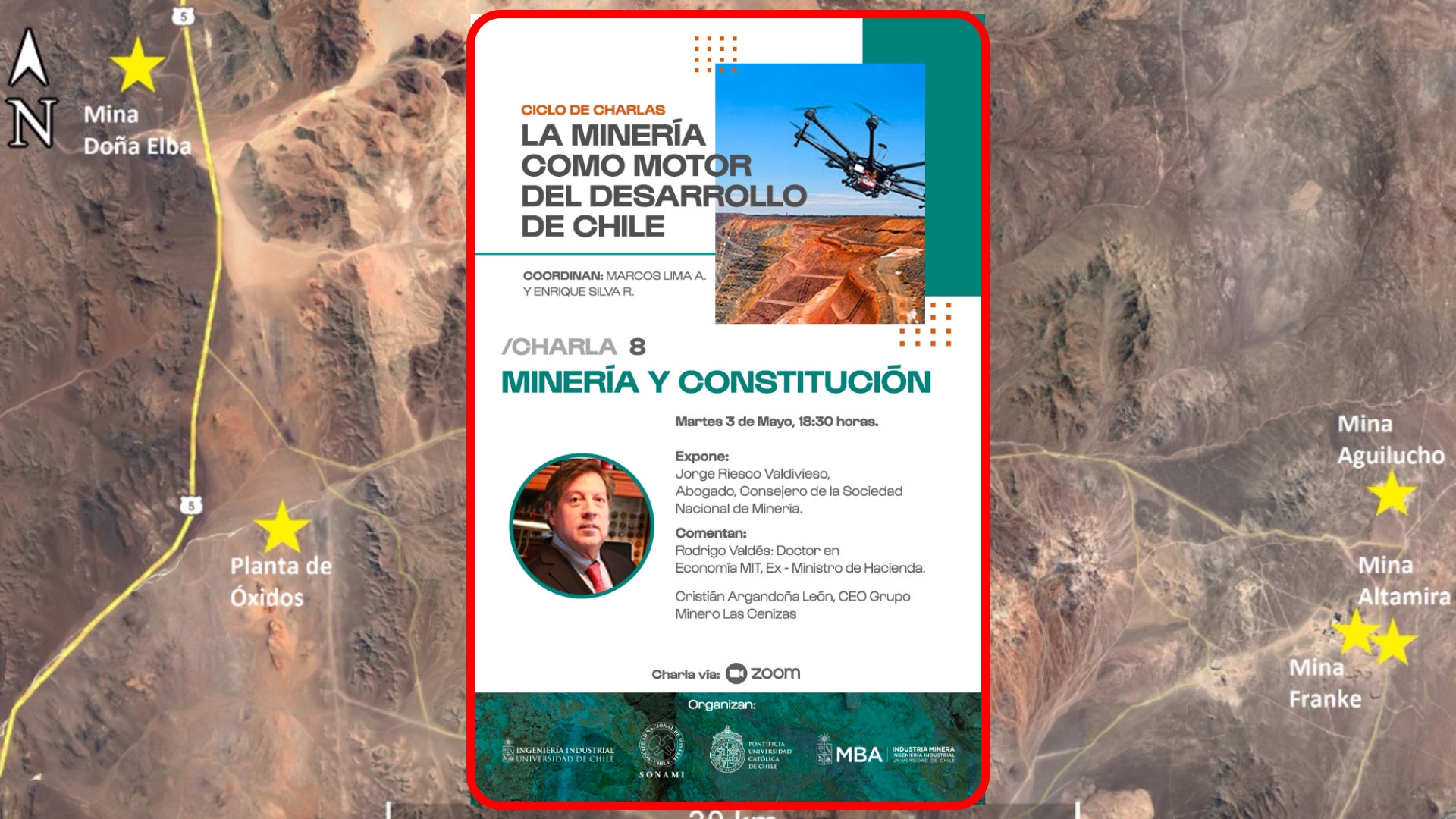En el marco del Ciclo de Conferencias sobre minería  que organizan la Escuela de Ingeniería Industrial de la Universidad de Chile; Sonami, PUC y MBA Industria Minera, el martes 3 de mayo se realizó , via zoom, la charla “Minería y Constitución”, que contó con la participación de nuestro gerente general, Cristián Argandoña, en representación de la mediana minería nacional.