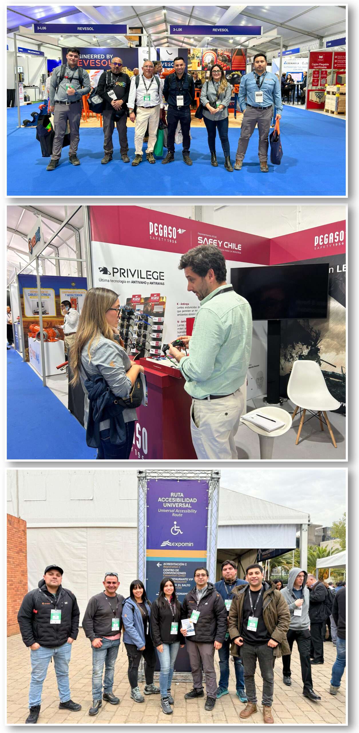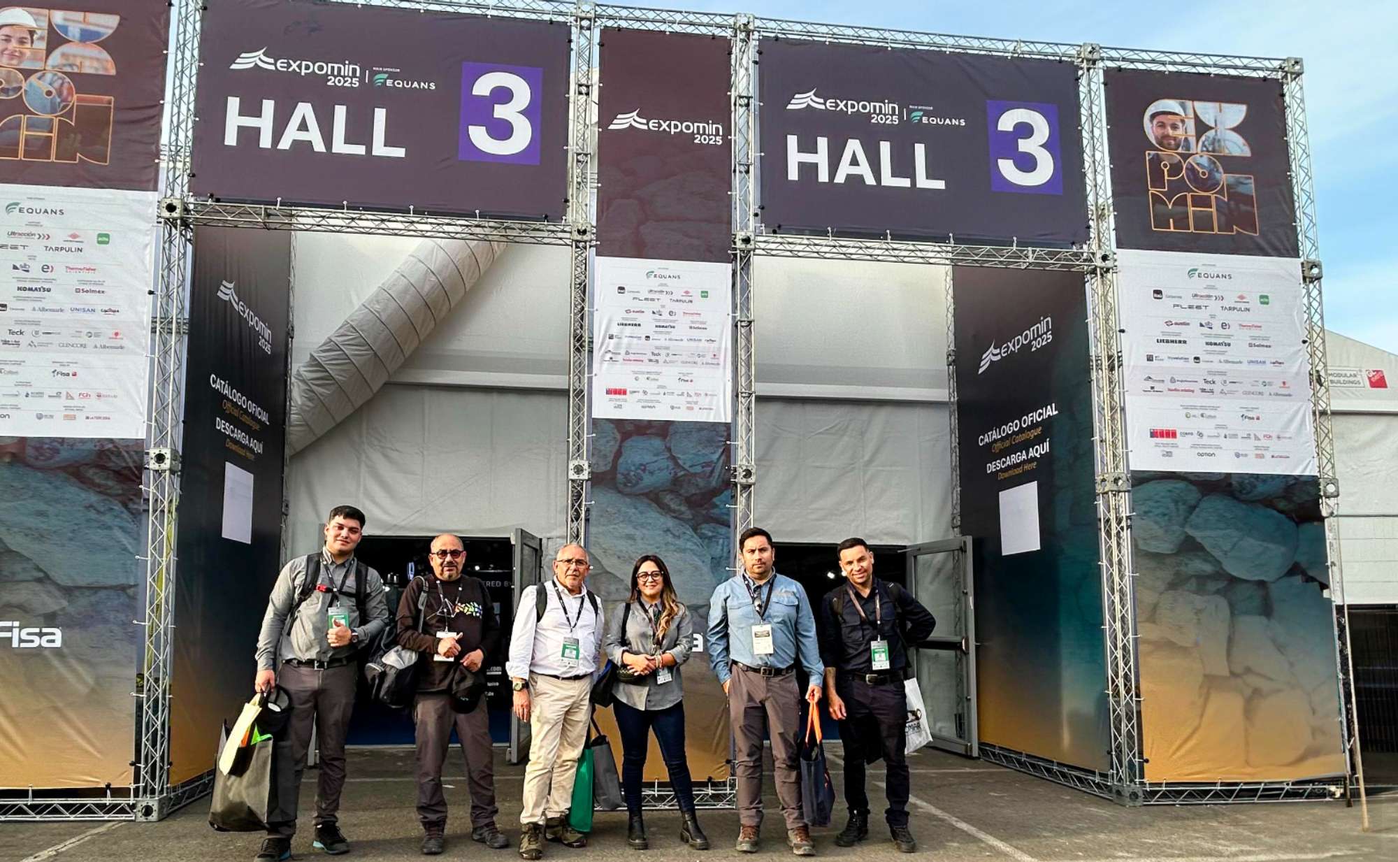 • Cristián Muñoz, Marcos Ponce y Alberto López asistieron este miércoles a EXPOMIN 2025 donde sostuvieron reuniones planificadas con proveedores de nuevas tecnologías orientadas al monitoreo en tiempo real de equipos y personal.