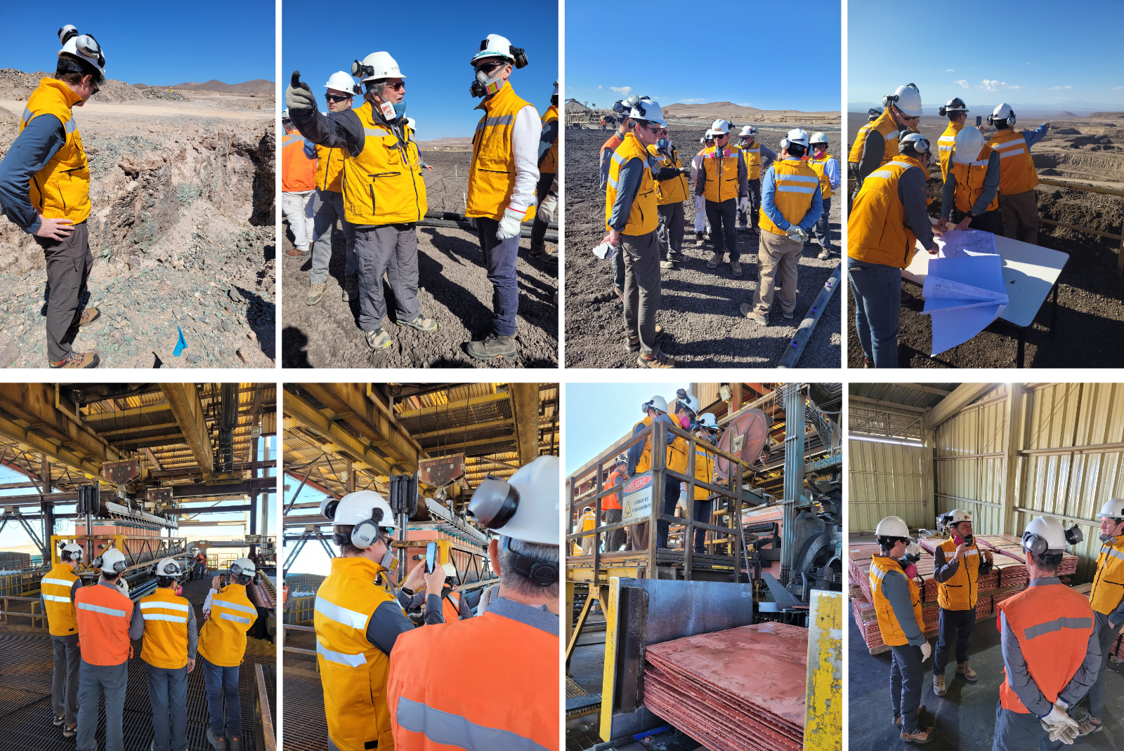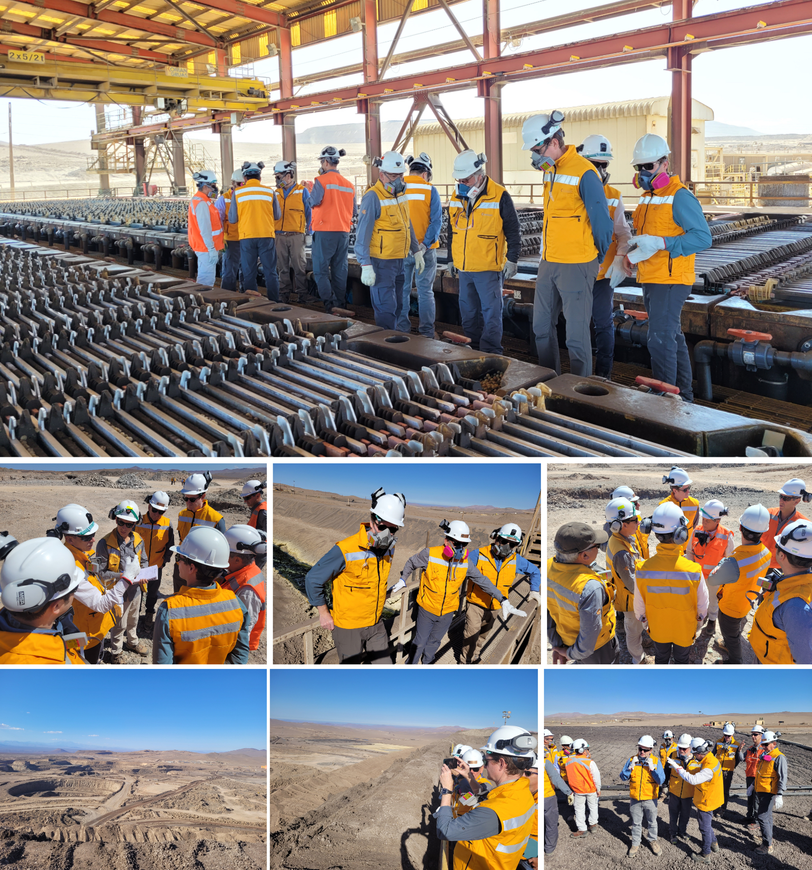 El equipo directivo recorrió las instalaciones de la faena desde mina Aguilucho hasta la nave de electro-obtención, pasando por su botadero mixto principal y la cancha de lixiviación de 250.000 [m2].