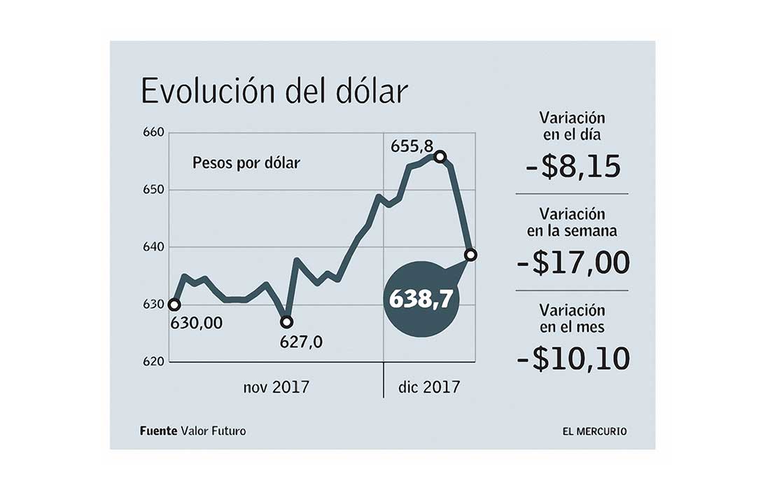 Una semana marcada de bajas sucesivas acumula el dólar previo a las elecciones presidenciales de este domingo. Luego que ayer cayera $8,15, en los últimos cuatro días el tipo de cambio suma un retroceso de $17, al cerrar la jornada en $638,7. En lo que va del año ha caído $32,3.