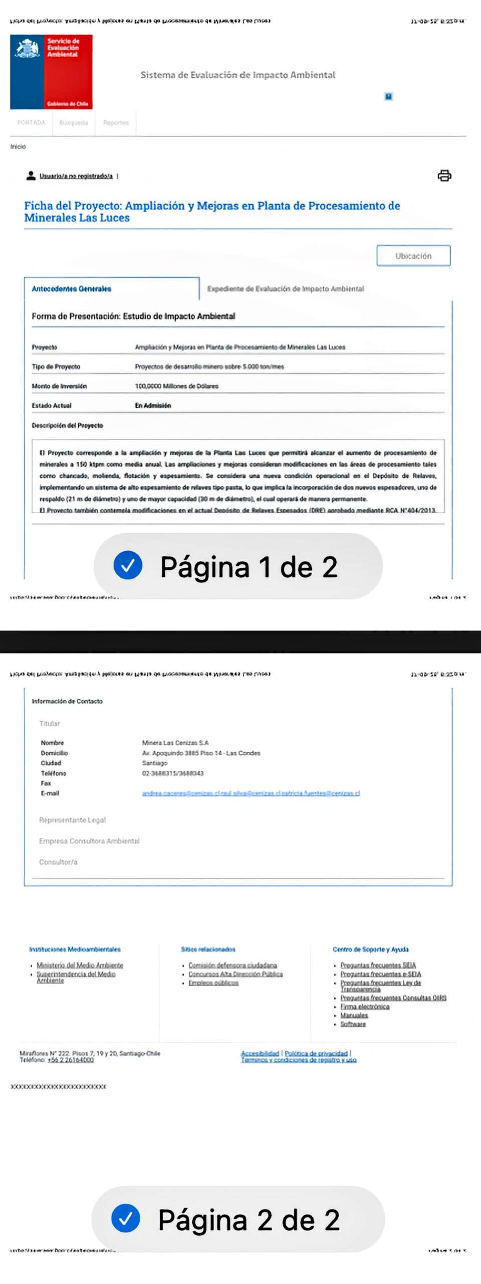 EIA del Proyecto de Ampliación y Mejoras en Planta Las Luces fue presentado al SEA