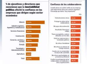 Los directivos señalan la inestabilidad política como el principal factor que ha afectado la confianza en las empresas durante el último año, destacando su mayor impacto en sectores específicos como la minería.