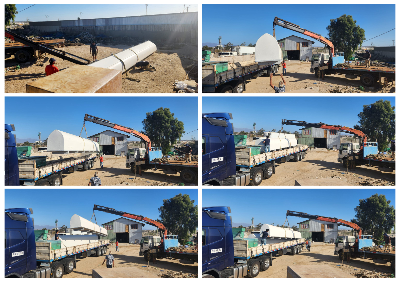 La estiba y traslado de la Balsa comenzó en Coquimbo durante la jornada del miércoles 25 de enero, para recorrer un trayecto de de 650 Km. y llegar en la madrugada del jueves a Playa Cifuncho.