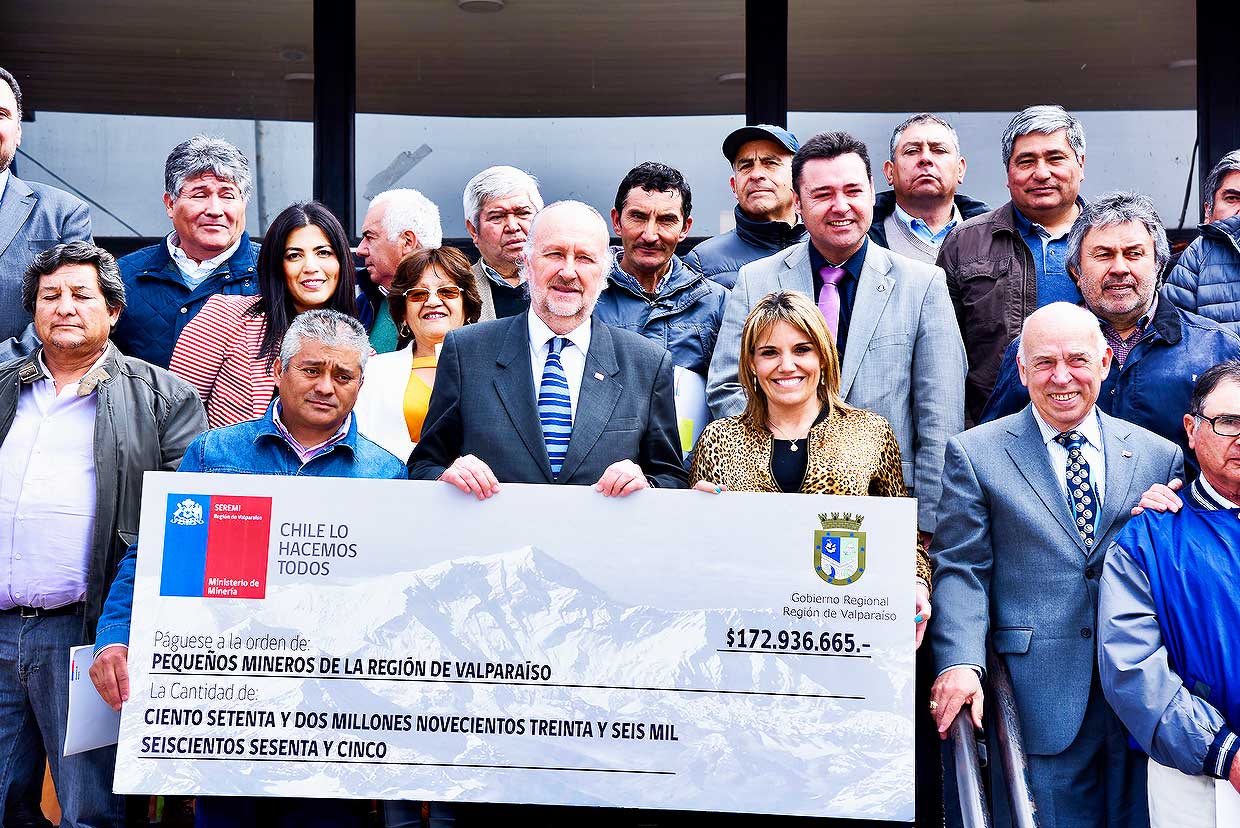 Con el objetivo de materializar el beneficio a 35 faenas individuales de la Región de Valparaíso, el ministro de Minería, Baldo Prokurica, se trasladó hasta La Ligua para encabezar la entrega de cheques a productores favorecidos por el Fondo Concursable Individual del “Programa de Transferencia, regularización, y Fomento a la pequeña minería de la Región de Valparaíso, II etapa” con la entrega de $172.936.665.
