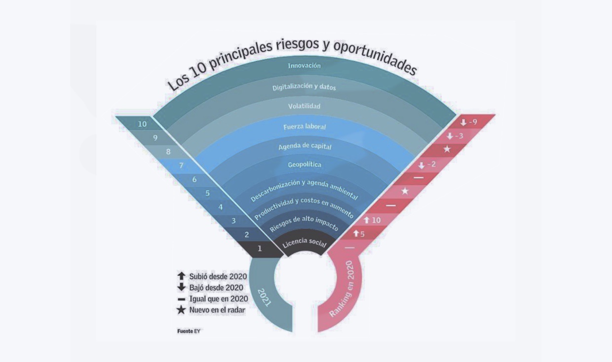 Los eventos de alto impacto, como la pandemia que afecta actualmente al planeta, fueron uno de los factores que mayor preocupación suscitaron entre los participantes del estudio "Los 10 principales riesgos y oportunidades de minería y metales a nivel mundial – 2021", que realiza EY y que este año contó con la participación de más de 250 ejecutivos de alto nivel del sector minero.