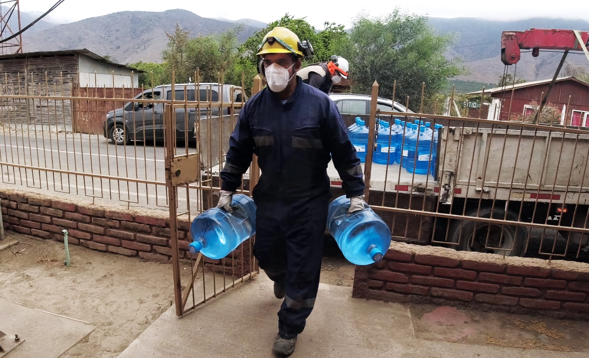 - Los filtros dispensadores y bidones de agua fueron entregados en la sede vecinal de Montegrande, por las encargadas del Área Comunidades de la Faena.