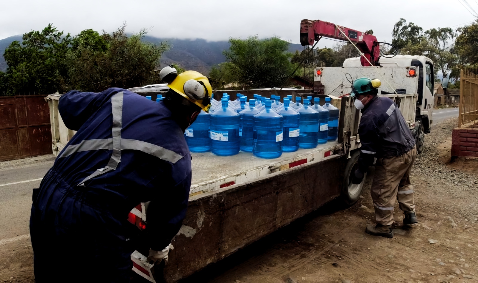 El miércoles 9 de febrero, 45 bidones y filtros dispensadores de agua fueron entregados a la directiva de la Junta de Vecinos de Montegrande por parte de Cenizas Cabildo.