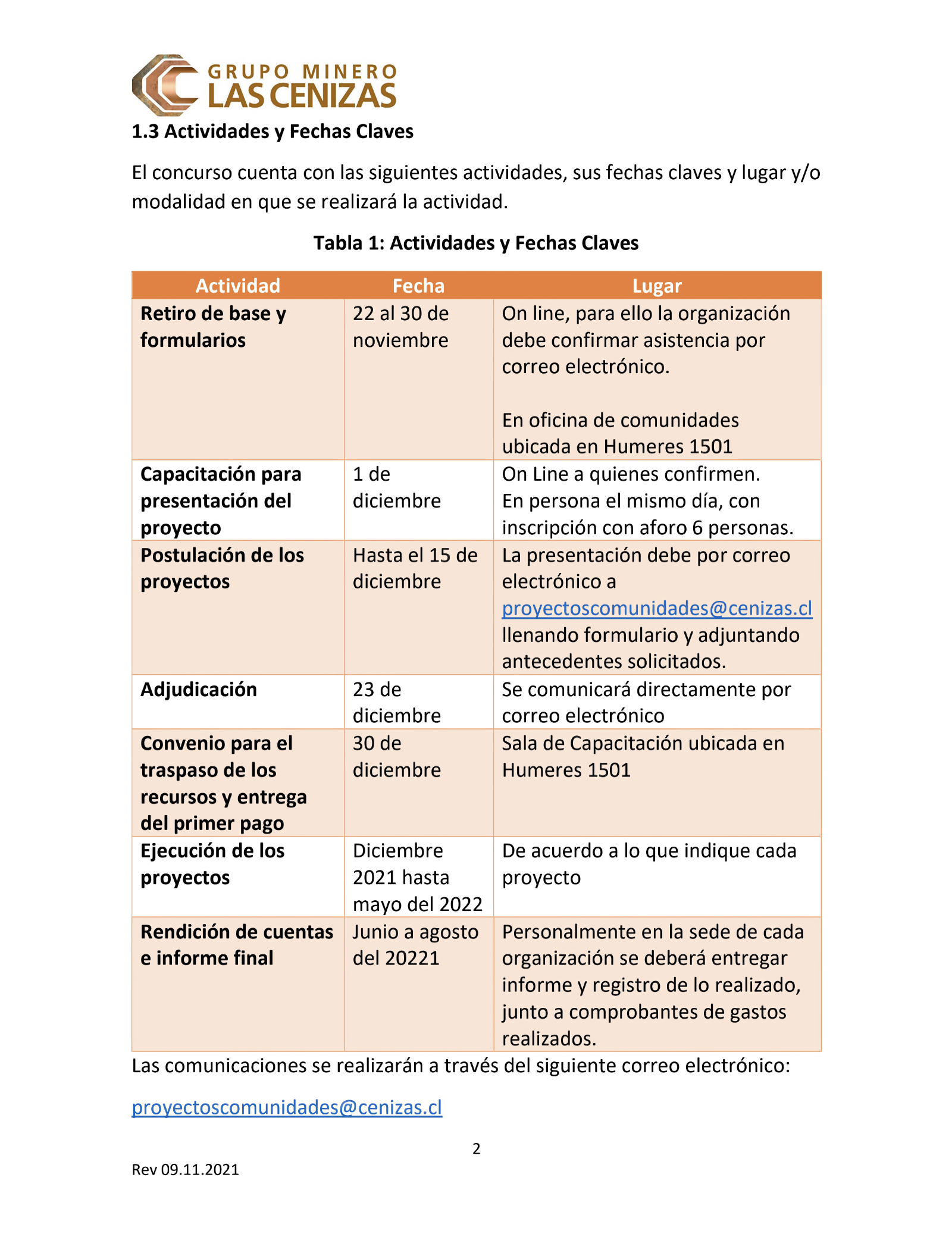 Las organizaciones tienen plazo hasta el 15 de diciembre para presentar sus proyectos y pueden participar aquellas legalmente constituidas, con personalidad jurídica y que cuenten con su Directorio vigente al momento de la postulación.