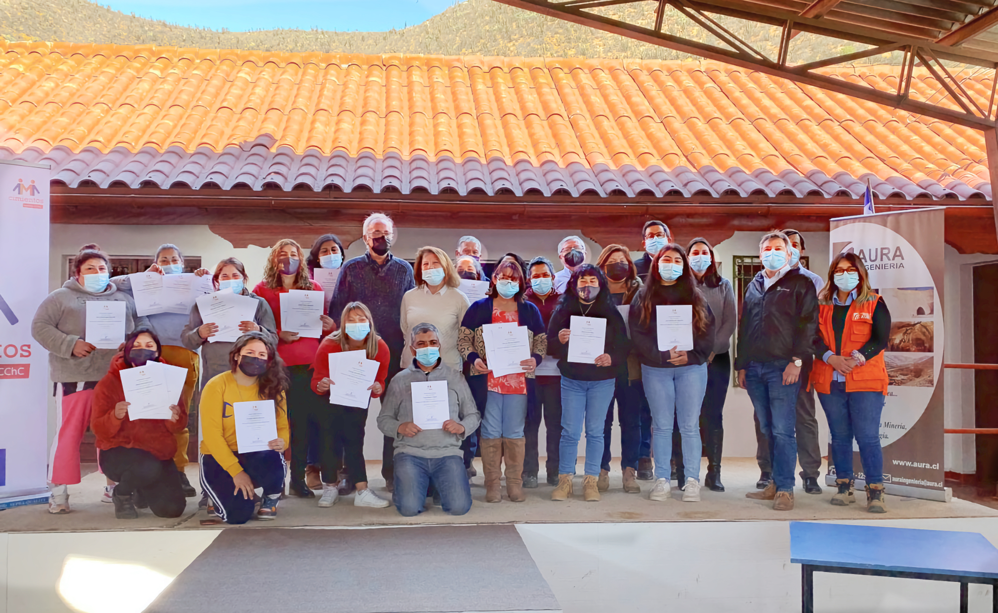 Empresa Aura invitó a representantes de faena Cabildo a participar de la ceremonia de clausura de esta capacitación, donde los vecinos que fueron parte de este curso recibieron un diploma de certificación.