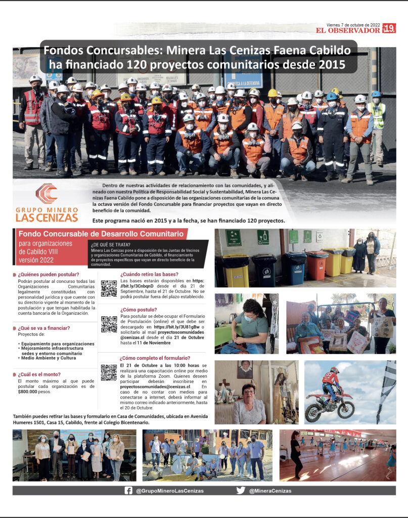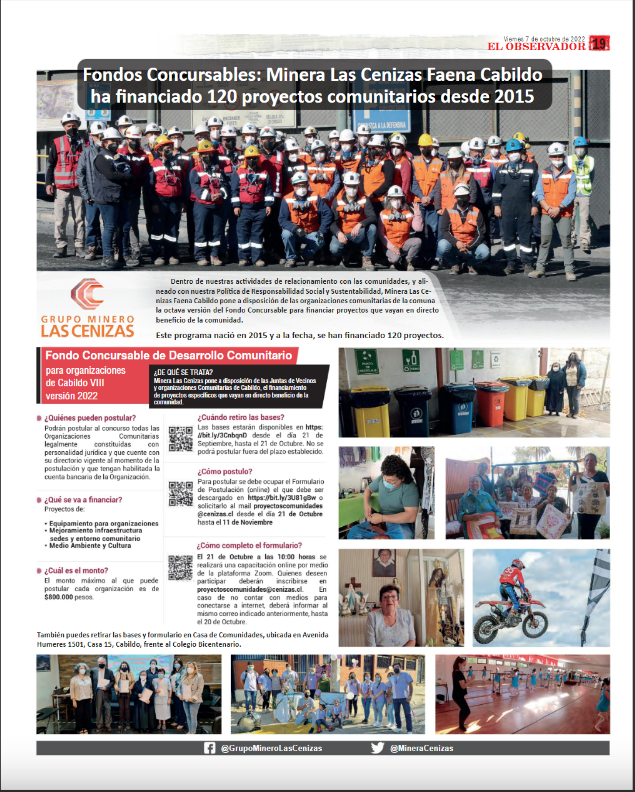 En ese sentido, Minera Las Cenizas Faena Cabildo apareció en la publicación, donde se destacada el trabajo realizado por la empresa, junto al Área de Comunidades, con las agrupaciones y organizaciones sociales.