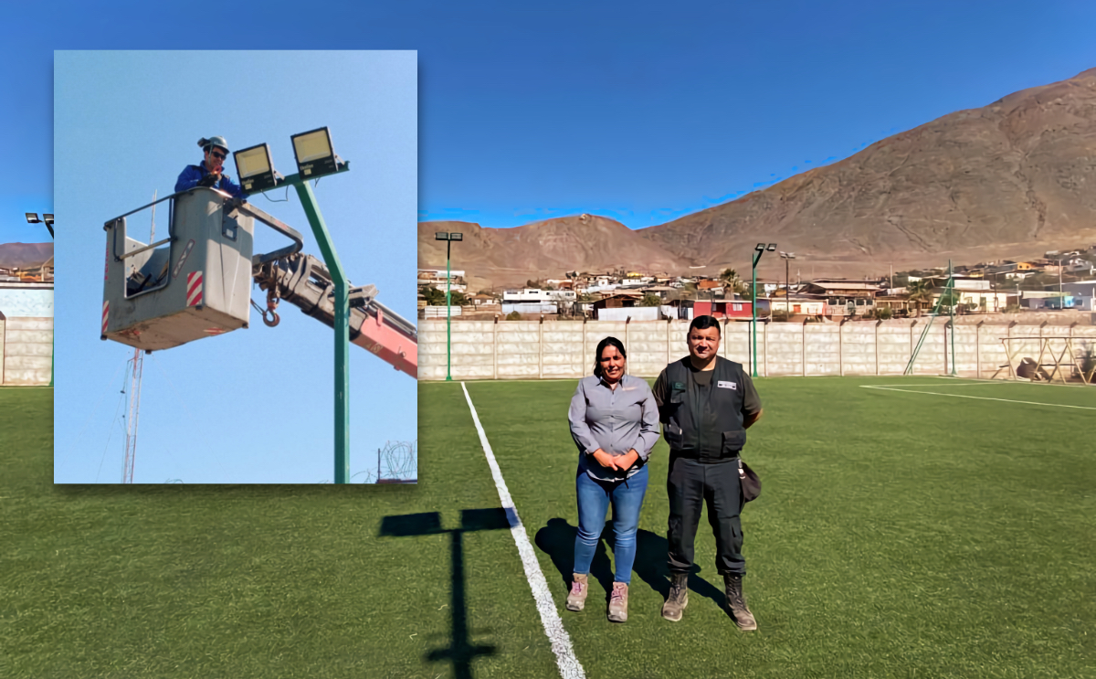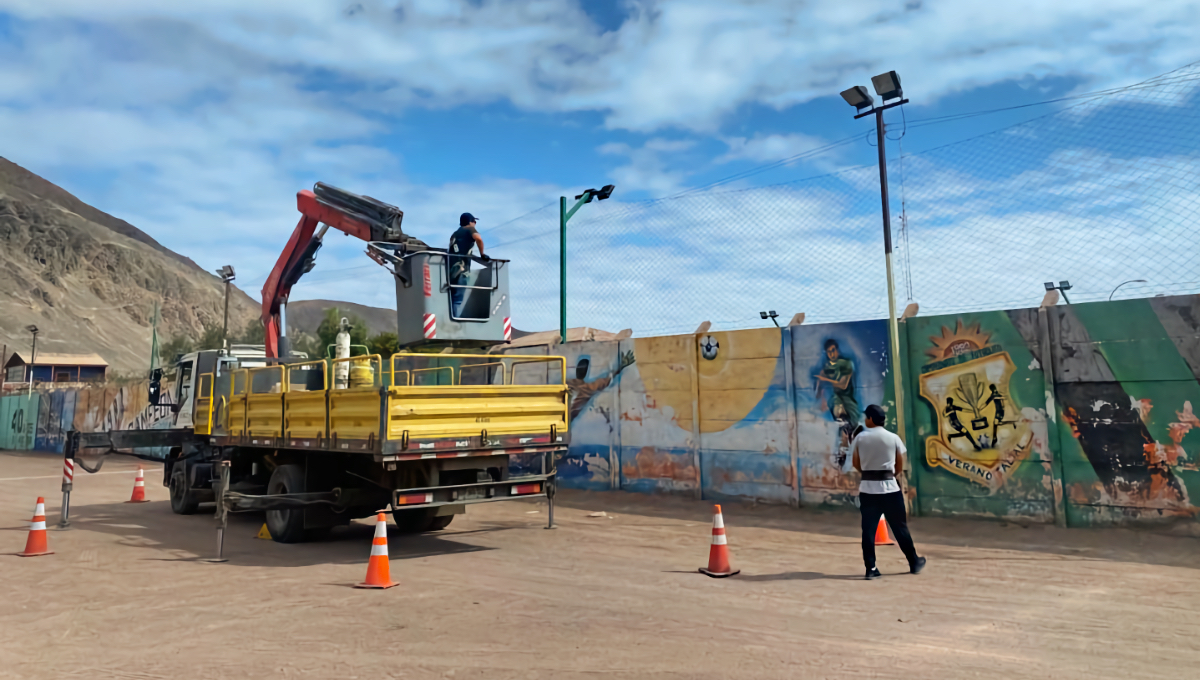 Faena Taltal arregla luminarias de recinto deportivo de Gendarmería de Chile