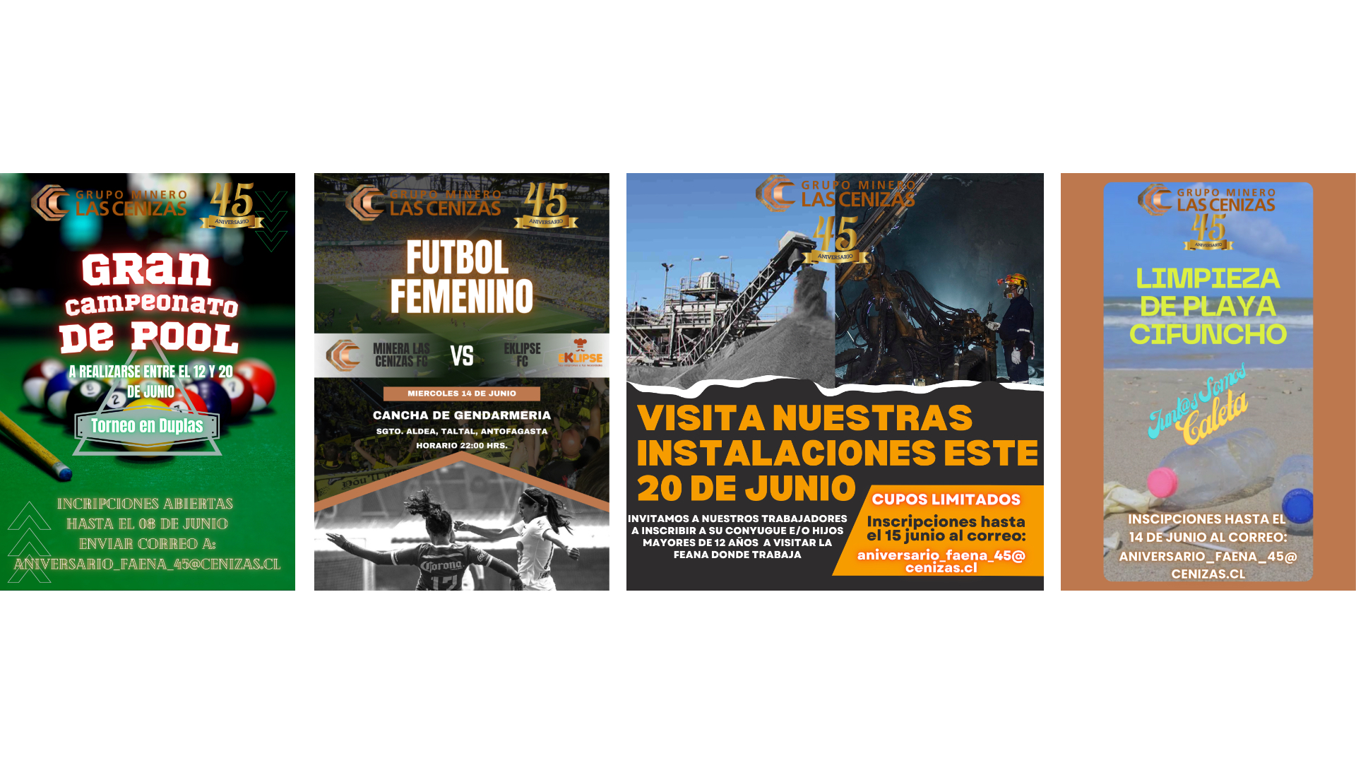 - Para que nadie se quede afuera de la celebración del 45 Aniversario de la empresa, faena Taltal elaboró una agenda especial de actividades con panoramas para todos los gustos.