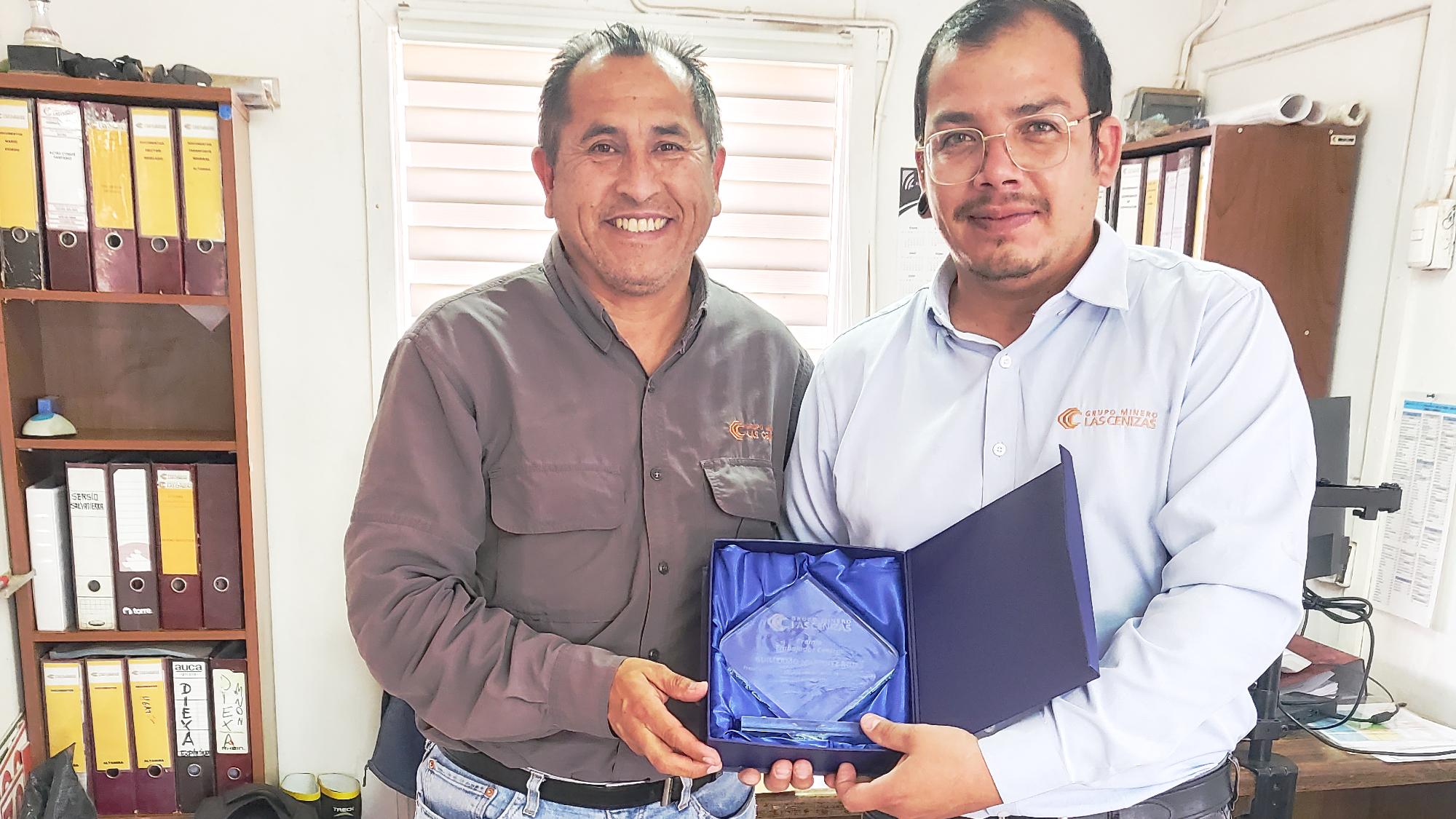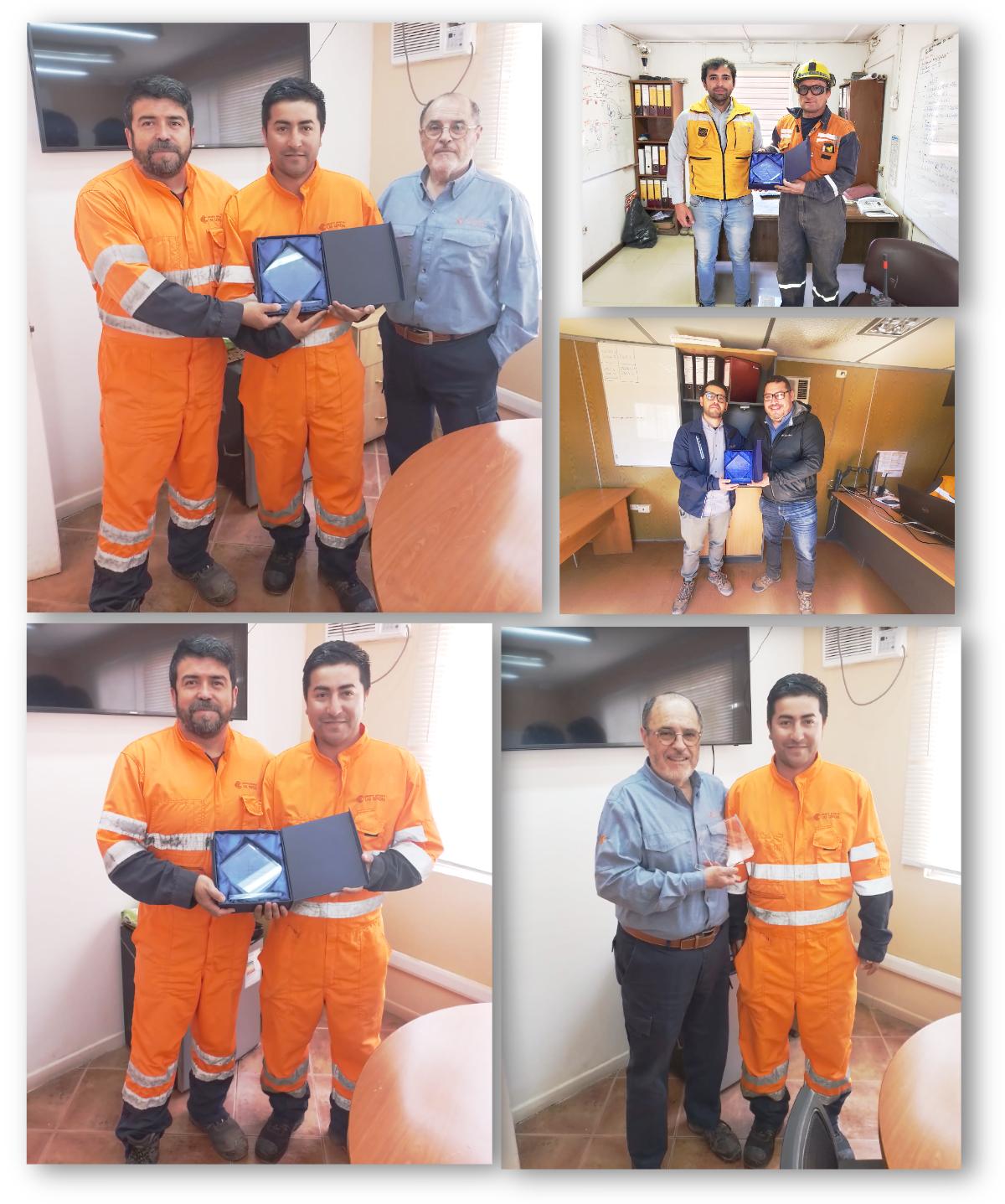 Los galardonados de las diferentes instalaciones de Minera Las Cenizas faena Taltal, recibieran de mano de sus jefaturas directas el galvano que los reconoce como los mejores representantes de las distintas áreas operativas .