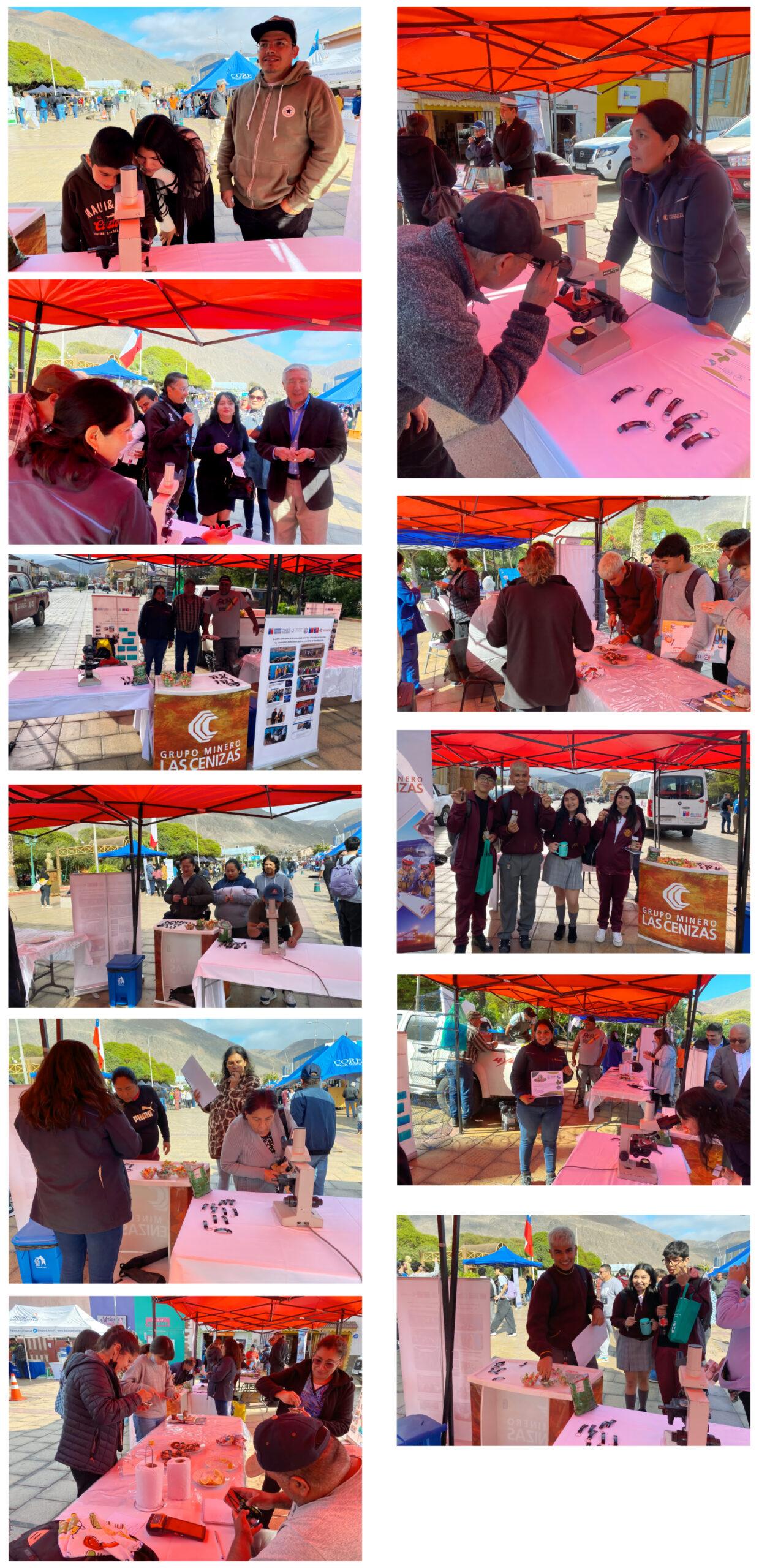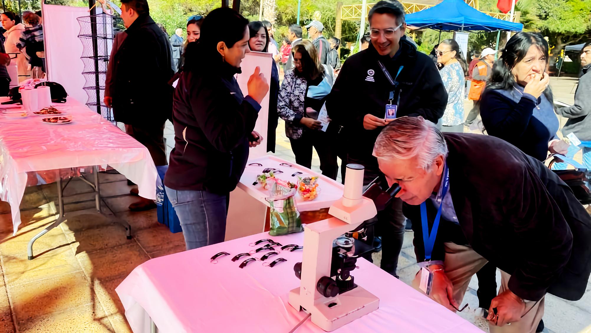 Nuestra faena montó un stand en que presentó el proyecto de ACUYMIN, en el que se montó un microscopio con cámara para mostrar detalles de los procesos asociados al cultivo de semillas de ostiones.
