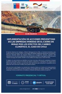- El Servicio Nacional de Geología y Minería (Sernageomin), en colaboración con la Comisión Económica para América Latina y el Caribe (CEPAL) y con el apoyo del Instituto Federal de Geociencias y Recursos Naturales de Alemania (BGR), a través del programa MinSus de Cooperación Alemana, realizará un seminario con foco en los desafíos que enfrenta la industria minera debido al cambio climático, específicamente en el contexto del cierre de faenas mineras.