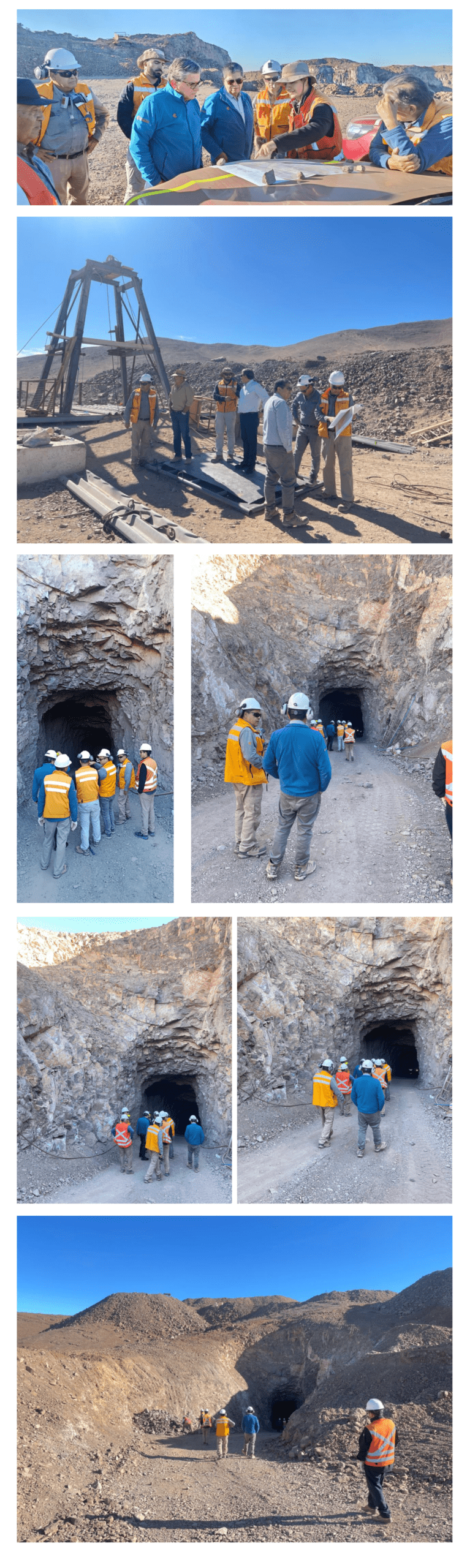 Durante la salida a terreno, el Gerente General, Cristián Argandoña, junto al Gerente de Operaciones Corporativo, René Fonseca, visitaron el proyecto y desarrollo del túnel de la mina subterránea Padre Alberto, donde conocieron en detalle el estado de avance y sus proyecciones.