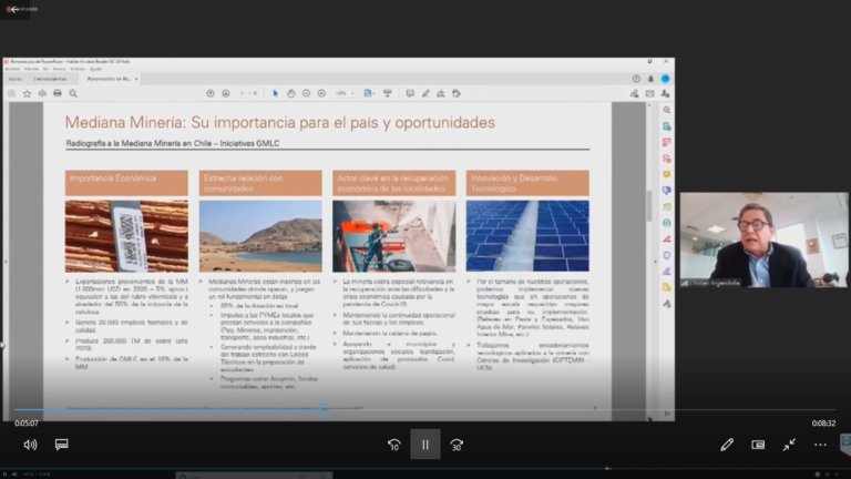 - Una detallada exposición sobre la debilitada situación en que quedaría la mediana minería de aprobarse el actual proyecto de royalty minero realizó -el miércoles 25 de agosto- el gerente general de la Compañía, Cristián Argandoña, ante los legisladores de la Comisión de Minería y Energía del Senado.