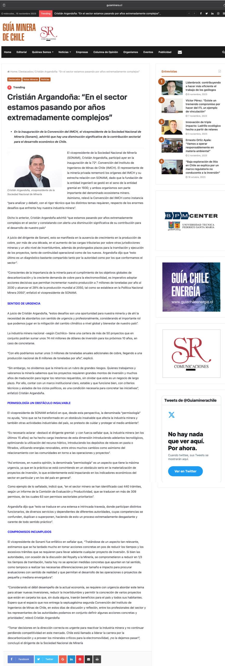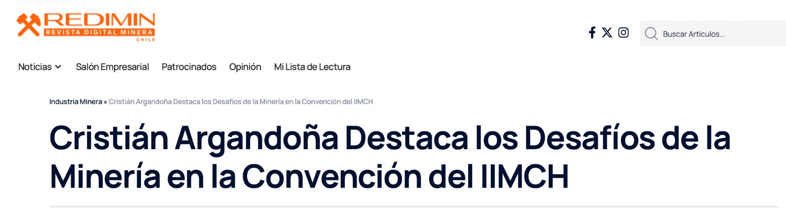 • Intervención de Cristián Argandoña, vicepresidente de la Sociedad Nacional de Minería (SONAMI), durante la 72ª Convención del Instituto de Ingenieros de Minas de Chile (IIMCH).