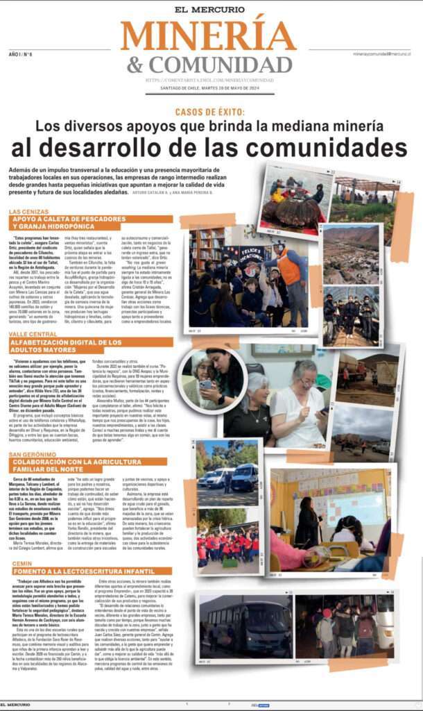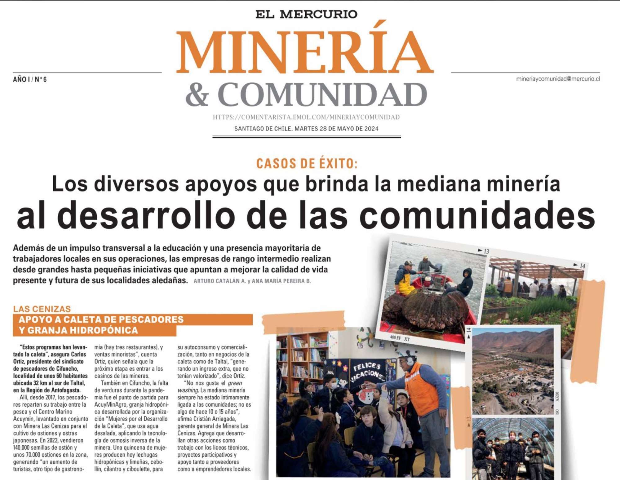 «No nos gusta el green washing. La mediana minería siempre ha estado íntimamente ligada a las comunidades; no es algo de hace 10 o 15 años», afirma Cristián Argandoña, gerente general de Minera Las Cenizas. Agrega que desarrollan otras acciones como trabajo con los liceos técnicos, proyectos participativos y apoyo tanto a proveedores como a emprendedores locales.